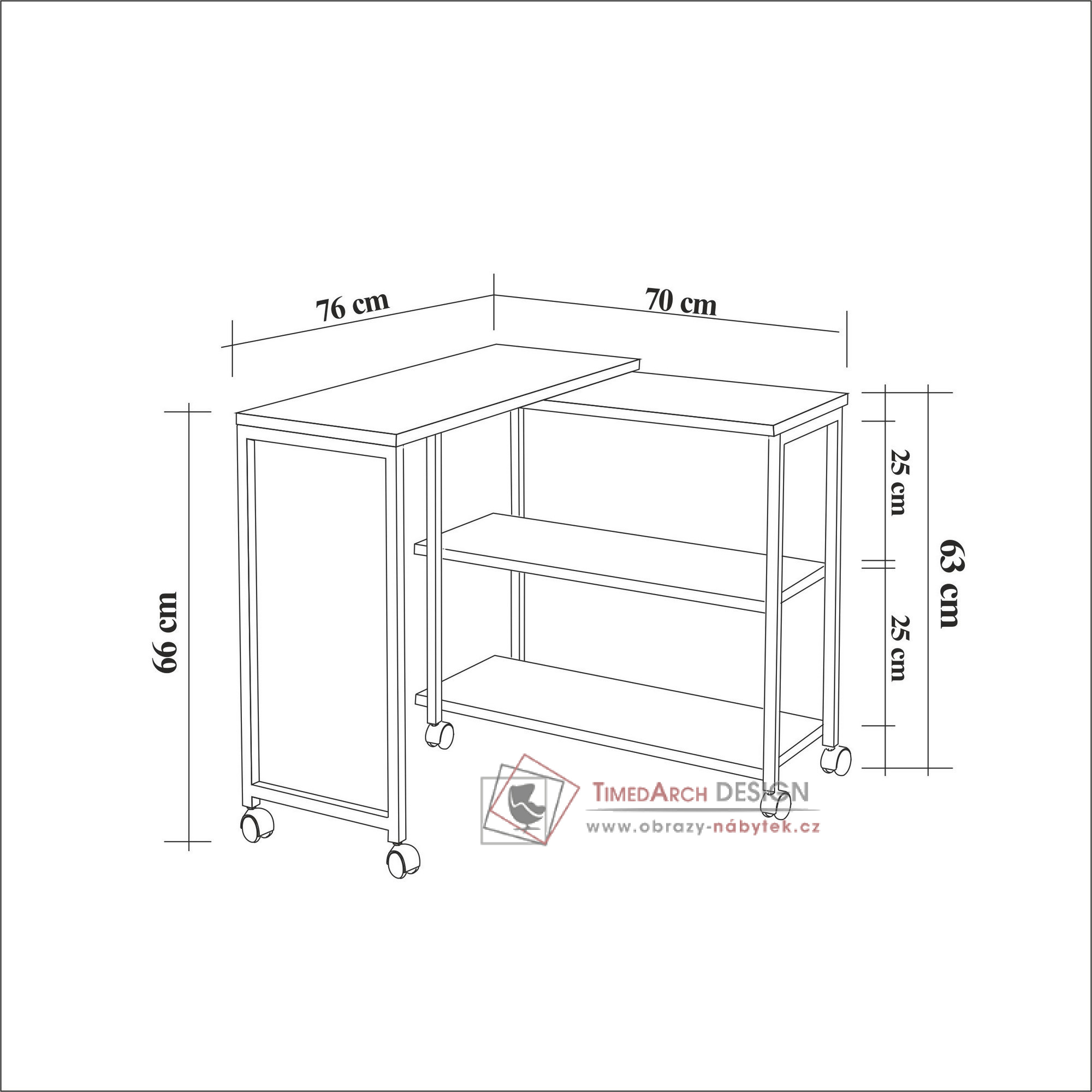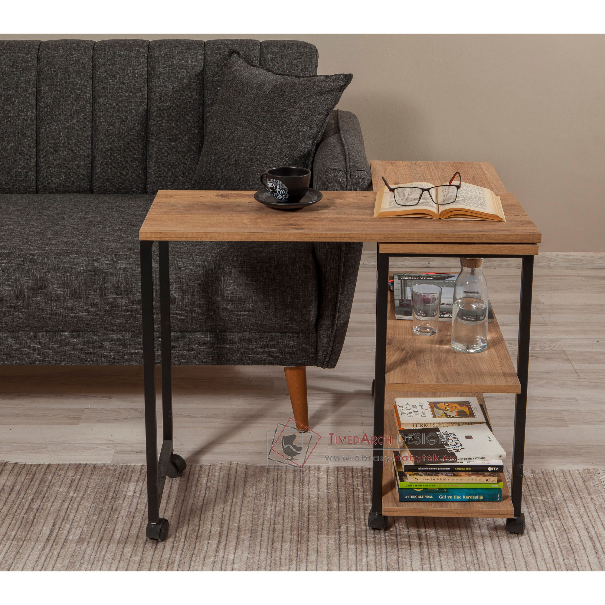 Ať už potřebujete noční stolek, konferenční stolek nebo praktické úložné řešení do obývacího pokoje, tento všestranný odkládací stolek vám pomůže. Jeho kompaktní rozměry a kolečkové nohy usnadňují přemisťování a umožňují vám bez námahy proměnit jakýkoli prostor podle vašich potřeb. Barevná kombinace atlantské borovice a černé dodá každému interiéru nádech sofistikovanosti.