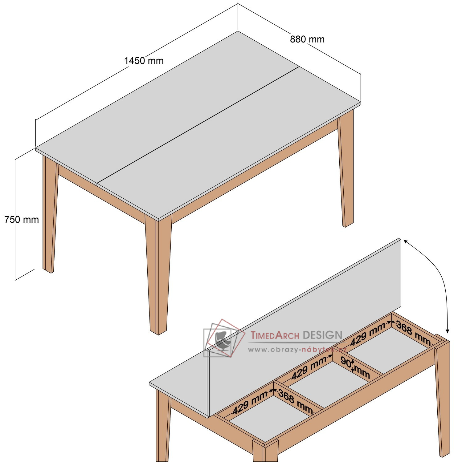 Jídelní stůl má úložný prostor o rozměrech 42,9 cm na šířku a 9 cm na výšku. Díky tomu získáte praktický prostor pro uložení vašich nezbytností pro stolování a udržíte si jídelní kout přehledný a organizovaný.