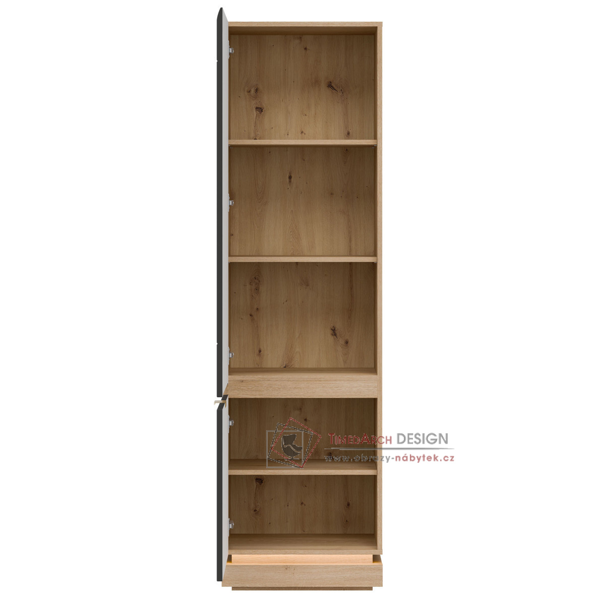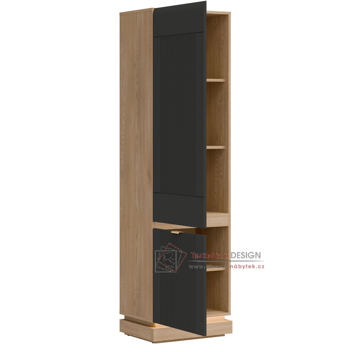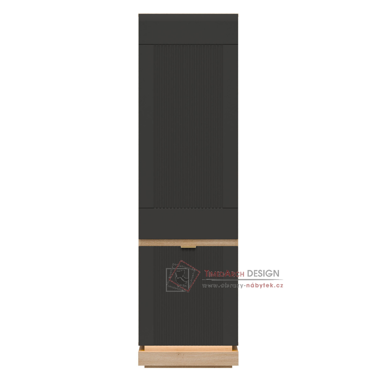 Skříň MILTON ML07 je elegantním a funkčním doplňkem kolekce MILTON, ideální pro moderní interiéry, kde se spojuje prostor a estetika. Vysoká, uzamykatelná konstrukce je navržena pro maximální kapacitu – vnitřní police jsou ideální pro uložení knih, dokumentů a doplňků denní potřeby, což zajišťuje pořádek a snadný přístup k obsahu. Matné MDF čela, dostupná v několika tlumených barvách, se vyznačují jemným frézováním, které zdůrazňuje moderní, ale zároveň nadčasový charakter kusu. Stylové zlaté úchytky dodávají elegantní vzhled. Korpus dub cremona torro vnáší do prostoru přirozené teplo a harmonicky doplňuje barvy čela, čímž vytváří moderní, ale zároveň útulnou kompozici. Skříňka je vybavena systémem tlumeného dovírání, který zajišťuje výjimečné pohodlí. Je to perfektní volba do obývacího pokoje, kanceláře nebo chodby – kamkoli, kde je styl, funkčnost a vysoce kvalitní řemeslné zpracování prvořadé.