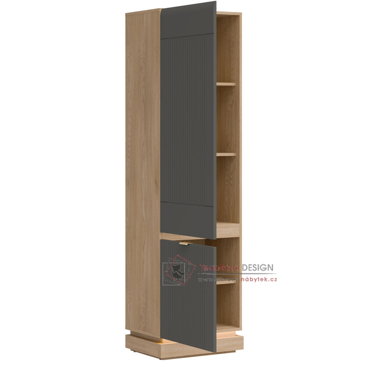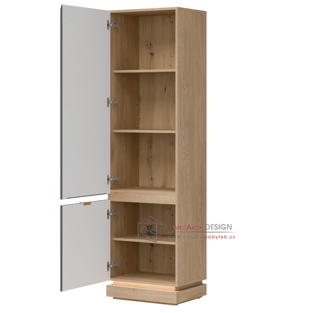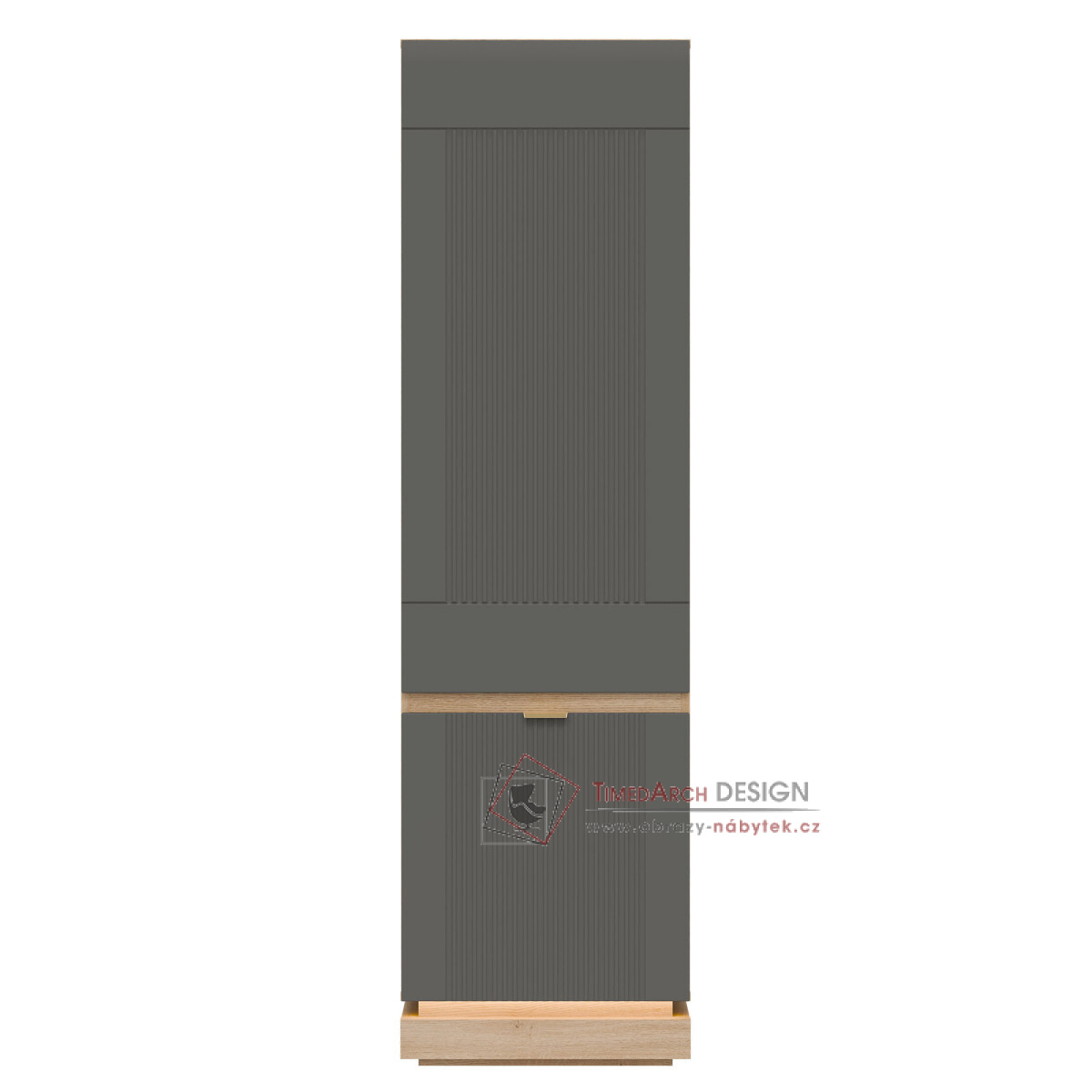 Skříň MILTON ML07 je elegantním a funkčním doplňkem kolekce MILTON, ideální pro moderní interiéry, kde se spojuje prostor a estetika. Vysoká, uzamykatelná konstrukce je navržena pro maximální kapacitu – vnitřní police jsou ideální pro uložení knih, dokumentů a doplňků denní potřeby, což zajišťuje pořádek a snadný přístup k obsahu. Matné MDF čela, dostupná v několika tlumených barvách, se vyznačují jemným frézováním, které zdůrazňuje moderní, ale zároveň nadčasový charakter kusu. Stylové zlaté úchytky dodávají elegantní vzhled. Korpus dub cremona torro vnáší do prostoru přirozené teplo a harmonicky doplňuje barvy čela, čímž vytváří moderní, ale zároveň útulnou kompozici. Skříňka je vybavena systémem tlumeného dovírání, který zajišťuje výjimečné pohodlí. Je to perfektní volba do obývacího pokoje, kanceláře nebo chodby – kamkoli, kde je styl, funkčnost a vysoce kvalitní řemeslné zpracování prvořadé.