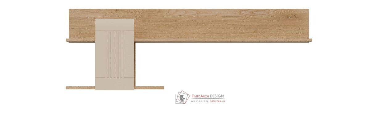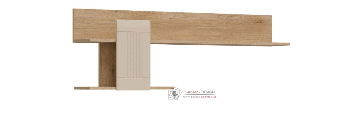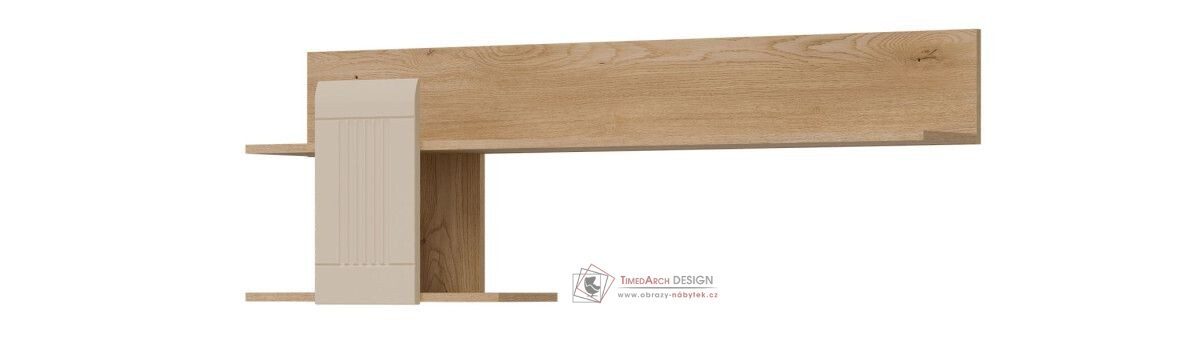 Závěsná police MILTON ML10 je moderní kus nábytku, který harmonicky kombinuje funkčnost s elegancí. Je vyrobena z dubu cremona torro a má dvě úrovně, které nabízejí praktický prostor pro uložení nebo vystavení knih, dekorací nebo drobných předmětů denní potřeby. Charakteristickým prvkem police je její dekorativní spojovací panel, který je k dispozici v několika matných barvách, což dodává celému kusu moderní nádech a vytváří zajímavý kontrast s teplým dřevěným dekorem. Tato decentní kombinace materiálů a barev činí z tohoto kusu perfektní volbu pro různé interiéry – od minimalistických až po klasičtější. Díky svému jednoduchému, ale expresivnímu designu je MILTON ML10 ideální do obývacího pokoje, jídelny, ložnice nebo domácí kanceláře – kamkoli, kde je estetika, pořádek a funkčnost prvořadá.