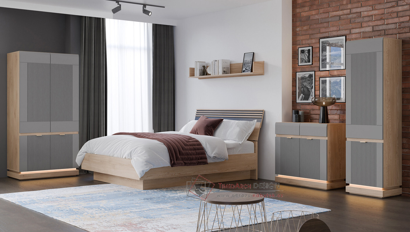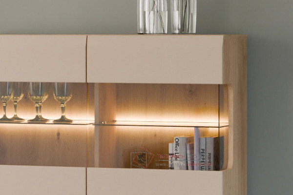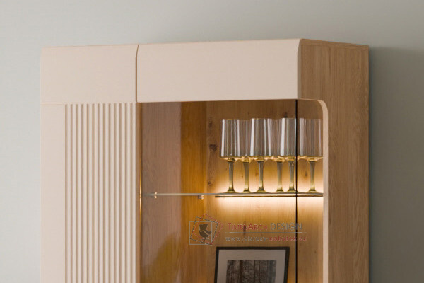 Její elegantní design kombinuje matné čela ve čtyřech barvách: kašmírová, šedá, antracitová a bílá s korpusy v povrchové úpravě z dubu cremona Torro. Frézovaná čela dodávají nábytku jedinečný charakter. Volitelné LED osvětlení ve vitrínách a dalších prvcích nábytku umocňuje jejich moderní charakter a vytváří útulnou atmosféru. Kolekce MILTON je perfektním řešením pro ty, kteří si cení moderního designu, funkčnosti a vysoce kvalitního řemeslného zpracování. Díky rozmanitosti prvků a barev vám nábytek v této sérii umožňuje vytvářet ucelené a elegantní aranžmá v celém domě.