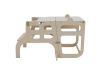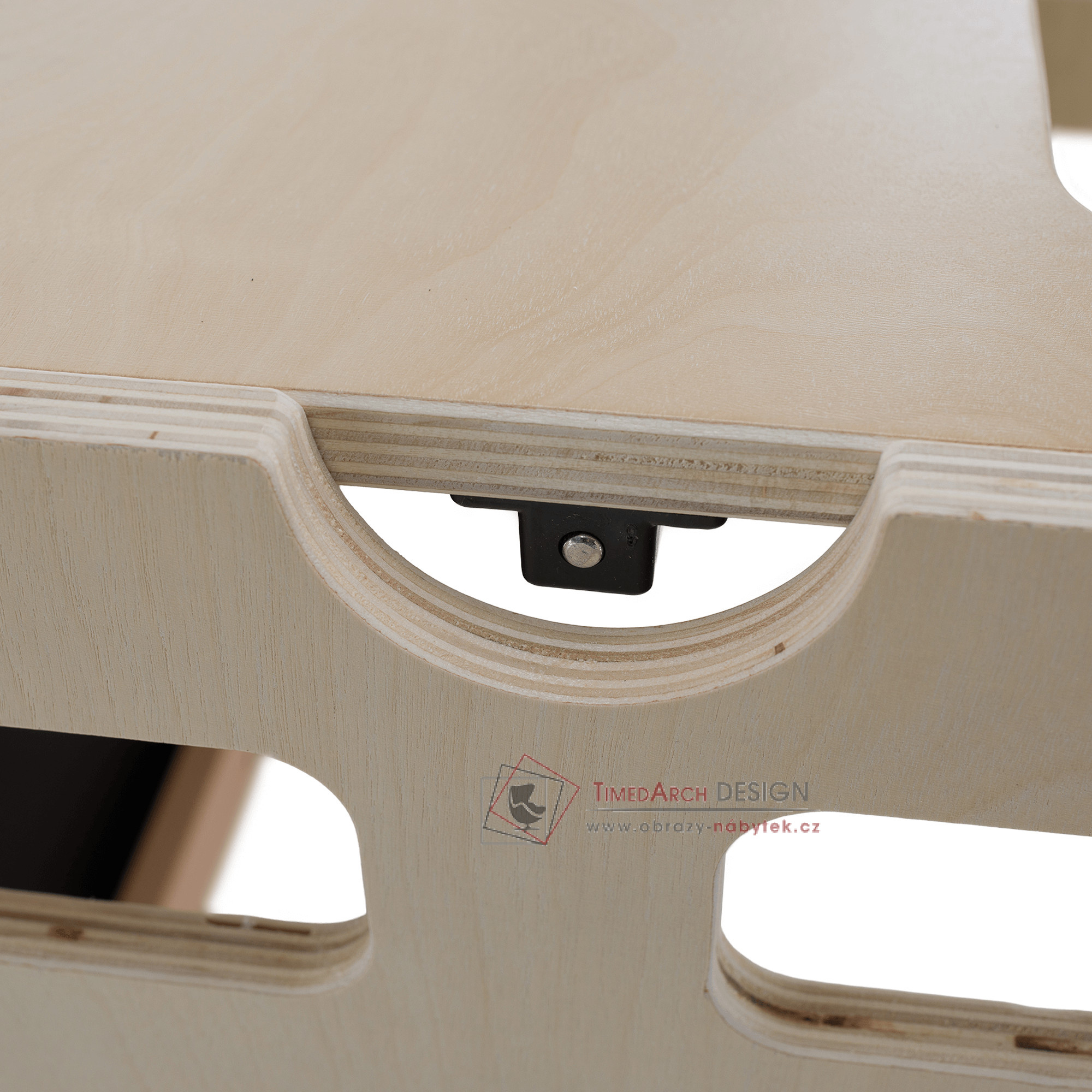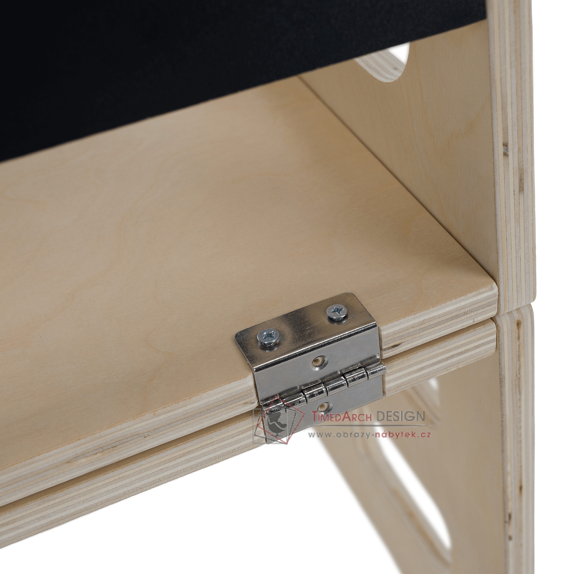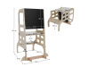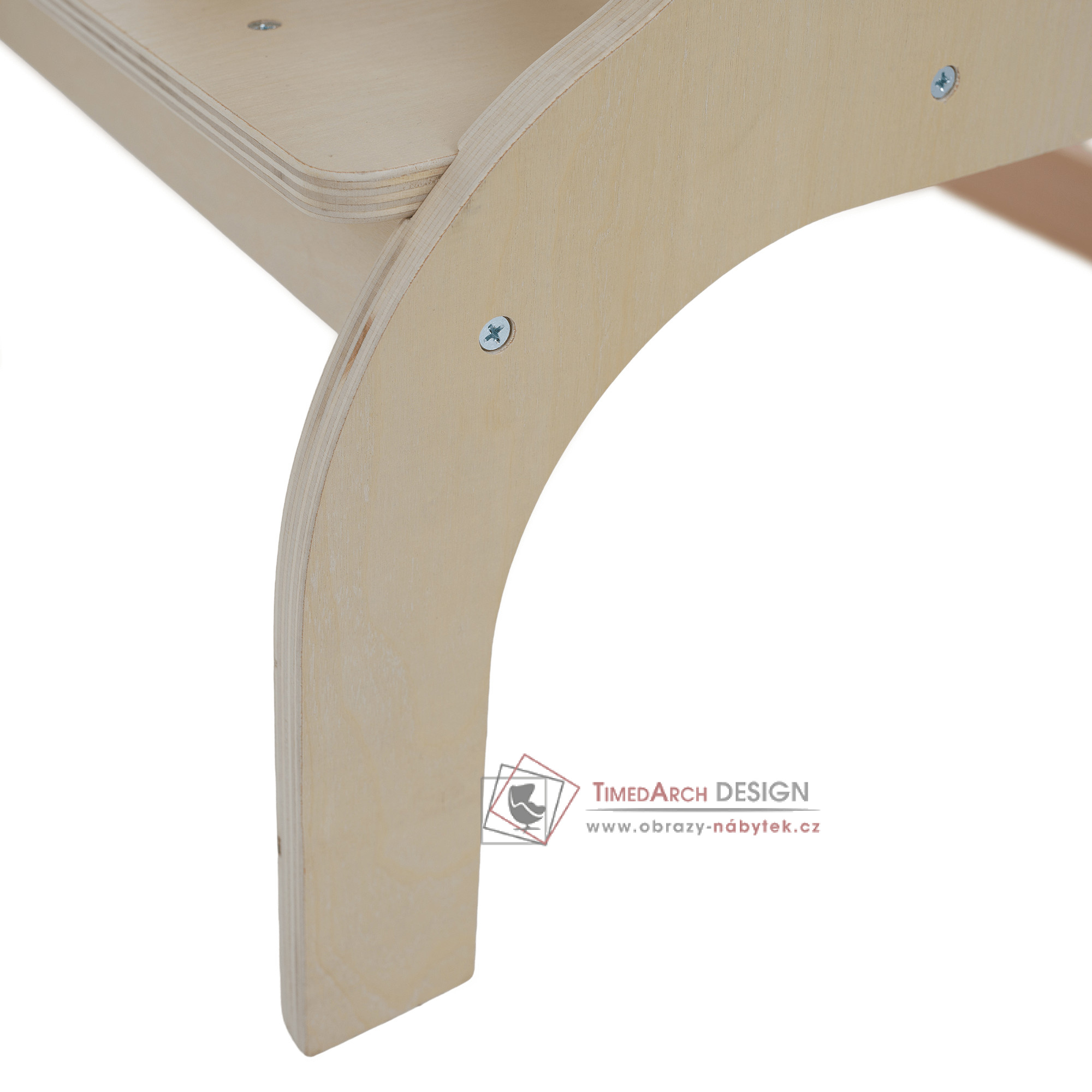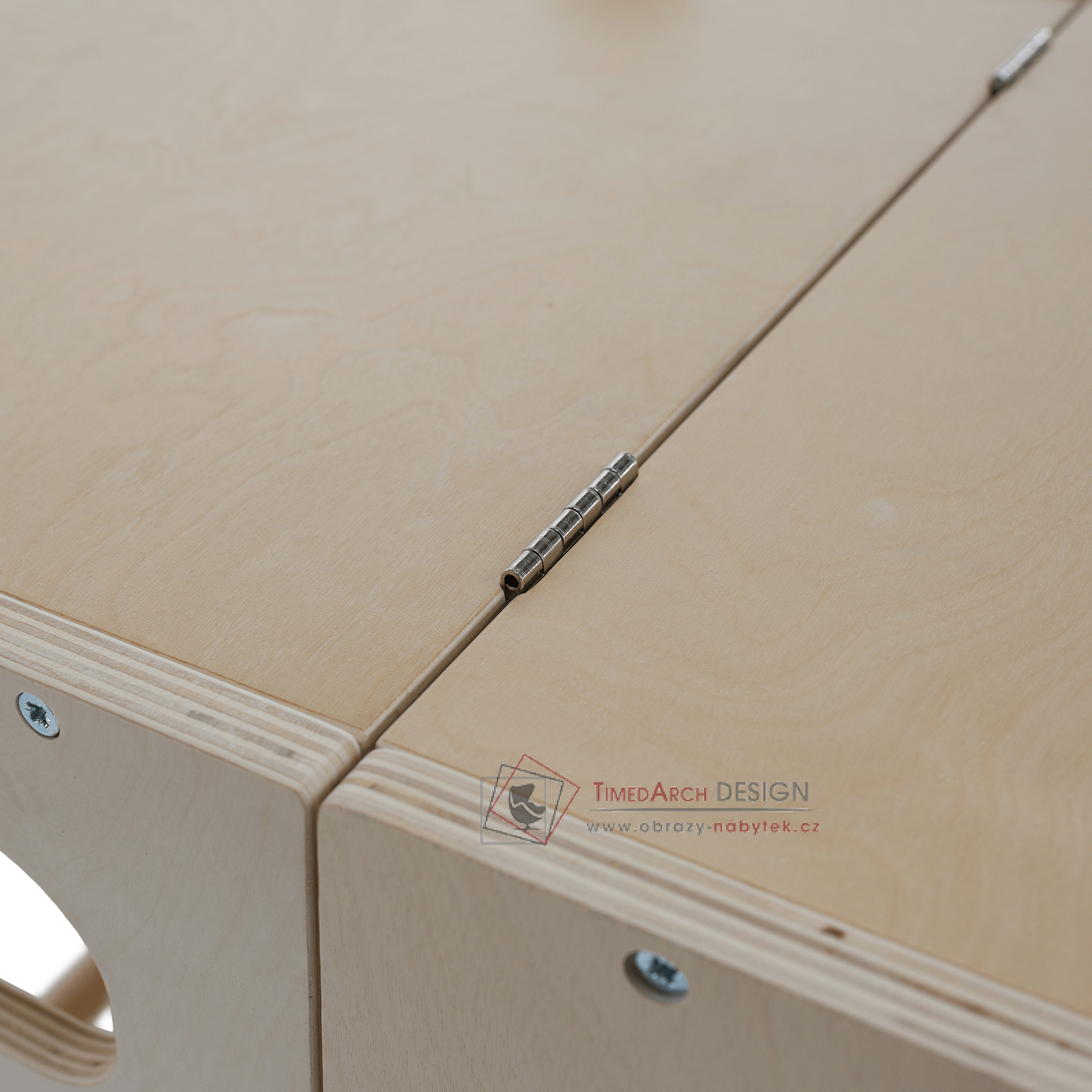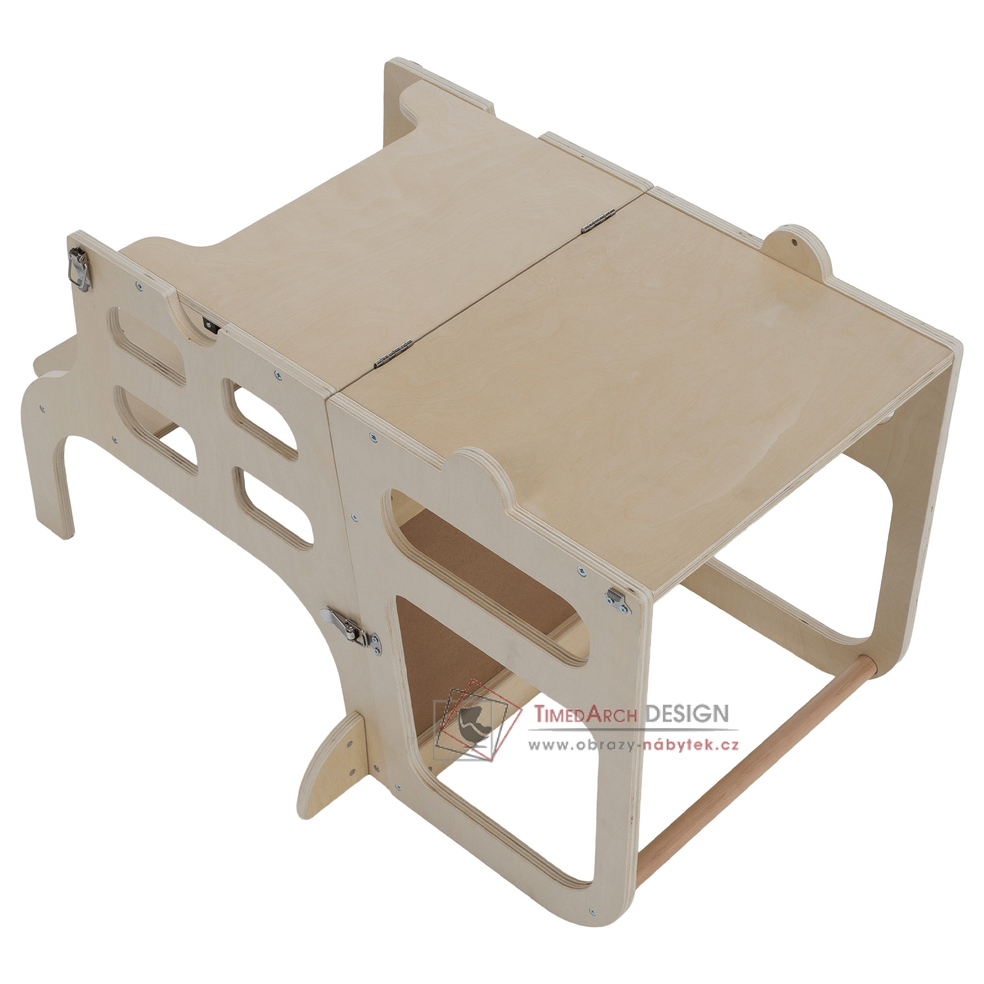 Je to hravý společník, který roste spolu s vaším dítětem a přirozeně se přizpůsobuje jeho potřebám. V jednu chvíli slouží jako bezpečná učící věž, v další se díky promyšlené konstrukci bez použití nářadí změní na stolek s židlí nebo tabuli na kreslení. Stačí jednoduše odemknout sponu, otočit a opět zajistit, abyste vytvořili nový prostor pro tvořivost, učení nebo společné chvíle. Zaoblené hrany chrání malé rukojeti, zatímco kvalitní kombinace masivního borovicového dřeva a překližky zaručuje stabilitu a dlouhou životnost. V přírodním provedení se dokonale hodí do každé domácnosti, kde rodiče chtějí svým dětem dopřát nejen funkční, ale také esteticky příjemný doplněk. Věž podporuje samostatnost a umožňuje dětem aktivně se zapojit do každodenních rodinných aktivit. Je určena pro děti starší jednoho roku, které již dokážou samostatně stát. Splňuje všechny bezpečnostní normy EN 14988:2017 + A1:2020. Věž MAGAN se může stát oblíbenou součástí vašeho domova.