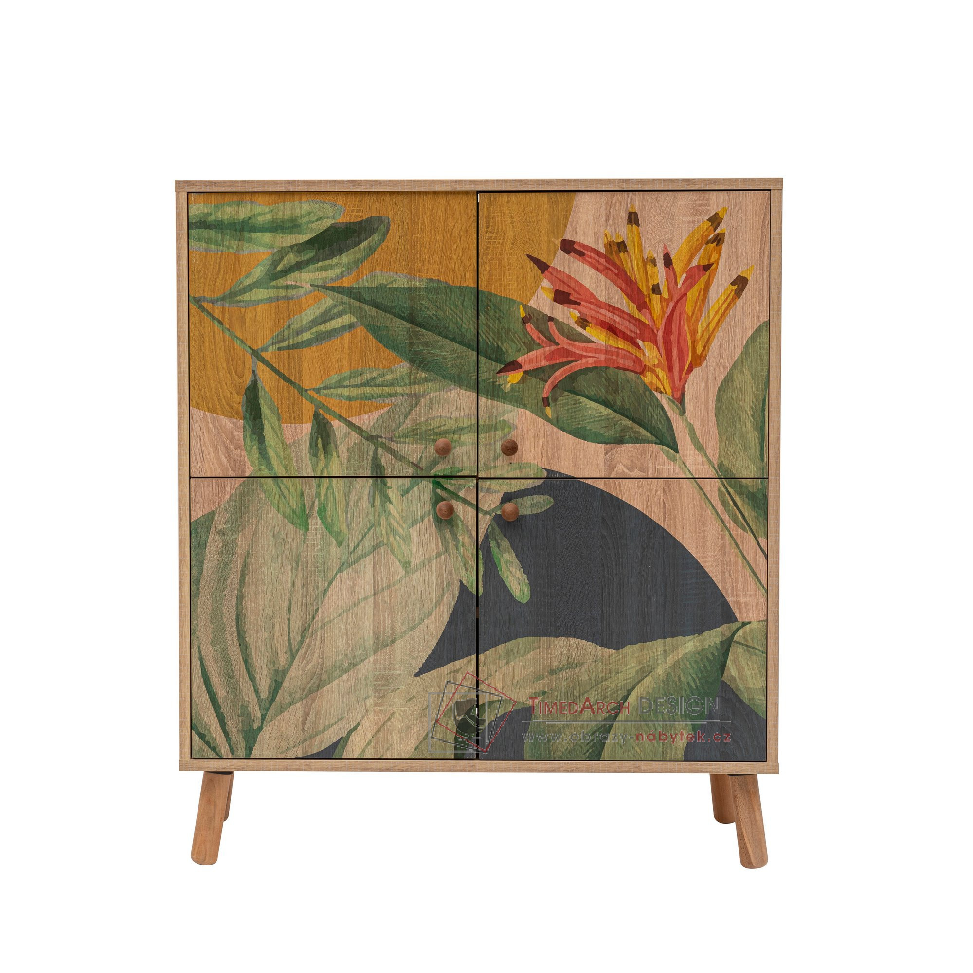 Kombinace barev sonoma, zelené a žluté dodává této komodě moderní a zářivý vzhled. Bez námahy se hodí do jakéhokoli interiéru a dodá vašemu prostoru barevný a osobitý nádech. Rozměry šířky 95 cm, výšky 111 cm a hloubky 36 cm jej předurčují do jakékoli místnosti, velké i malé.