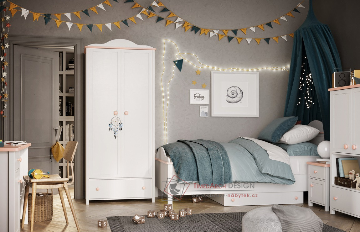 Šatní skříň 2-dveřová se zásuvkou POLONA 12 z nábytkové řady určené zejména pro zařízení dětského pokoje pro malé princezny nebo i studentského pokoje pro větší slečny.