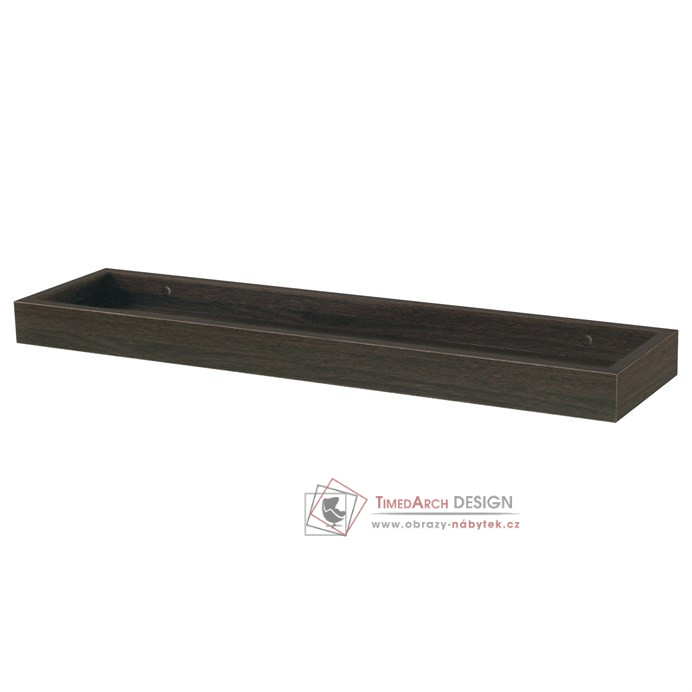 Moderní minimalistická polička se zvýšenými okraji v barevném provedení ořech.