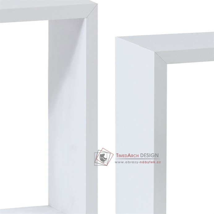 Poličky mají jednoduchý, moderní design s čistými liniemi a hranami, které podtrhují jejich minimalistický vzhled. Různé velikosti jednotlivých kusů umožňují variabilní uspořádání na stěně podle potřeby a prostoru. Jsou vhodné pro vystavení dekorací, knih nebo drobných předmětů a díky pevnému provedení zajistí stabilní oporu. Balení obsahuje ochrannou fólii pro bezpečnou manipulaci a přepravu. Tloušťka desky 2 cm.