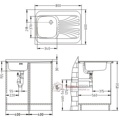 Nerezový nástavný dřez vyrobený nejmodernější technologií z materiálu Cr Ni 18/10 největší jakosti. Tato potravinářská ocel s vysokým obsahem chrómu a niklu je nejvhodnější pro výrobu nerezových dřezů, mezi největší přednosti patří odolnost proti korozi i při narušeném povrchu, odolnost proti vysokým teplotám, odolnost vůči chemickým účinkům a nárazům, vysoká životnost a hygiena. Dřez se neloupe, nemůže prasnout a rozbít se. Je recyklovatelný v hutnické výrobě, tím je šetrný k životnímu prostředí. Povrch dřezu je hladký, rozměry dřezu - 60 x 80 cm, rozměr dřezové nádoby 34 x 37 x 15,5 cm. Jedná se o levou variantu ( viz obrázek ). Dřez je celoplošný, vhodný na skříňku o šířce 80 cm a hloubky 45 cm bez nutnosti přidání pracovní desky. Sifon je součástí balení. Součástí sifonu je i přípojka na myčku s kompletním montážním příslušenstvím. Dřez obsahuje ve spodní části dřevěný rám pro snažší montáž ke kuchyňské lince.