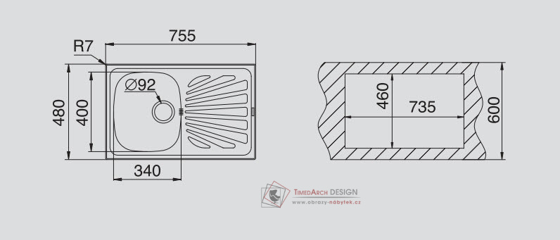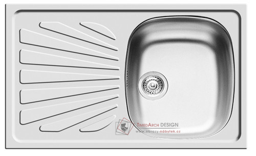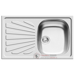 Nerezový dřez vyrobený nejmodernější technologií z materiálu Cr Ni 18/10 (DIN 1.4301) největší jakosti. Tato potravinářská ocel s vysokým obsahem chrómu a niklu je nejvhodnější pro výrobu nerezových dřezů, mezi největší přednosti patří odolnost proti korozi i při narušeném povrchu, odolnost proti vysokým teplotám, vysoká životnost a hygiena. Dřez se neloupe, nemůže prasnout a rozbít se. Je recyklovatelný v hutnické výrobě, tím je šetrný k životnímu prostředí. Povrch dřezu je hladký, rozměry dřezu - 75,5 x 48 cm, rozměr dřezové nádoby 34 x 40 x 15 cm. Dřezováí plocha obsahuje odtok napojený na sifon, který je součástí balení. Součástí sifonu je i přípojka na myčku s kompletním montážním příslušenstvím. Dřez je vestavný do pracovní desky, která se pokládá na kuchyňskou skříňku pod dřez, která má šířku min. 45 cm. Dřez je reversibilní (dá se uložit z obou stran).