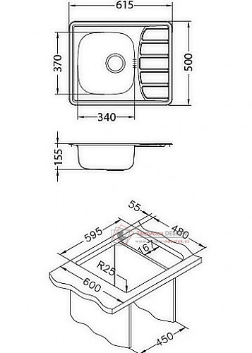 Nerezový vestavný dřez vyrobený nejmodernější technologií z materiálu Cr Ni 18/10 největší jakosti. Tato potravinářská ocel s vysokým obsahem chrómu a niklu je nejvhodnější pro výrobu nerezových dřezů, mezi největší přednosti patří odolnost proti korozi i při narušeném povrchu, odolnost proti vysokým teplotám, odolnost vůči chemickým účinkům a nárazům, vysoká životnost a hygiena. Dřez se neloupe, nemůže prasnout a rozbít se. Je recyklovatelný v hutnické výrobě, tím je šetrný k životnímu prostředí. Povrch dřezu je hladký, rozměry dřezu - 61,5 x 50 cm, rozměr dřezové nádoby 34 x 37 x 15,5 cm. Dřezová plocha obsahuje odtok napojený na sifon, který je součástí balení. Součástí sifonu je i přípojka na myčku s kompletním montážním příslušenstvím. Dřez je vestavný do pracovní desky, která se pokládá na kuchyňskou skříňku pod dřez, která má šířku min. 45 cm. Dřez je reversibilní (dá se uložit z obou stran).