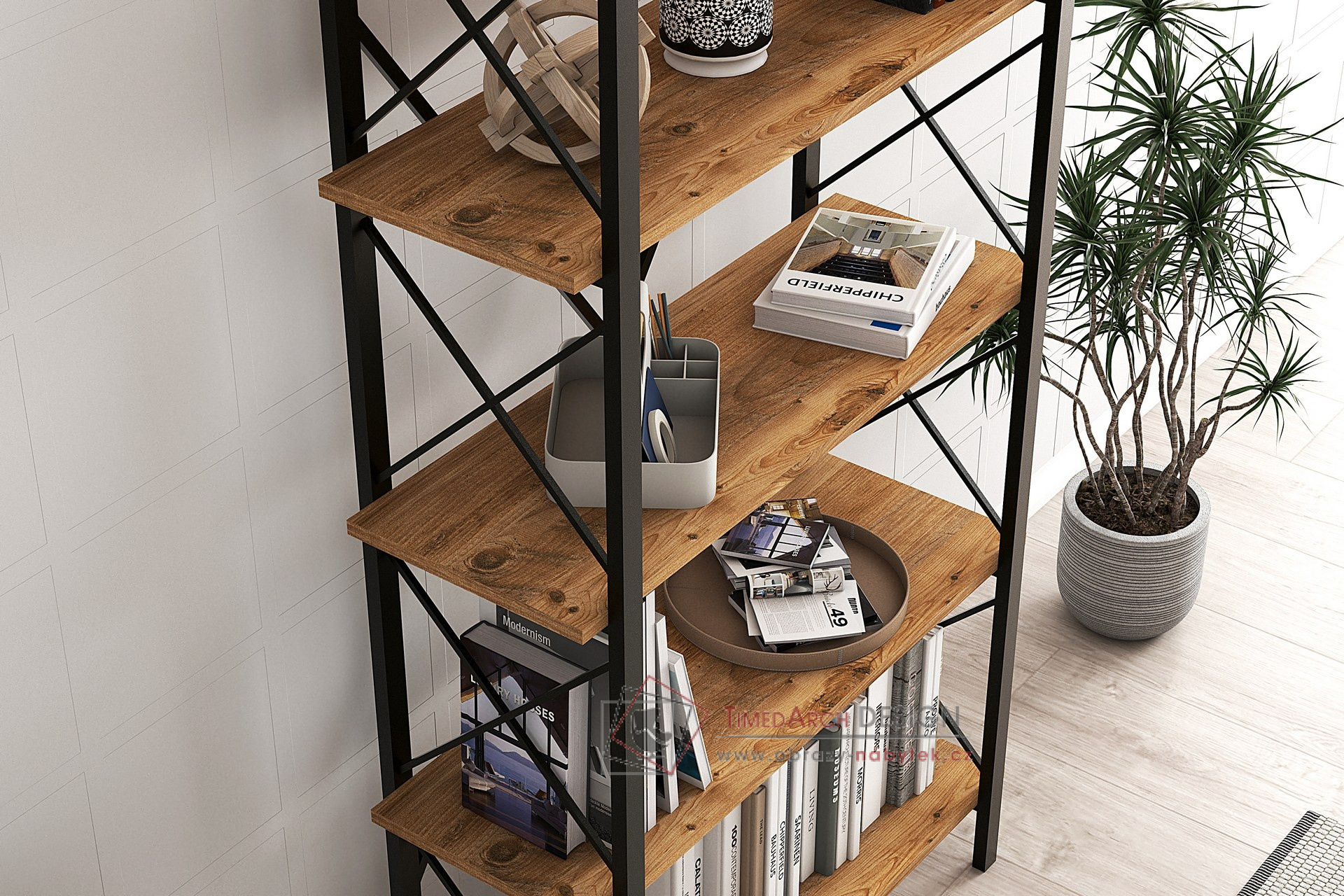 Kombinace barvy ořechu a černé dodává této knihovně stylový a industriální vzhled. Bez námahy se hodí do jakéhokoli stylu interiéru, od moderního až po rustikální, a dodá vašemu prostoru nádech charakteru. Ať už ji umístíte do obývacího pokoje, ložnice nebo kanceláře, tato knihovna se jistě stane ústředním bodem vašeho interiéru.