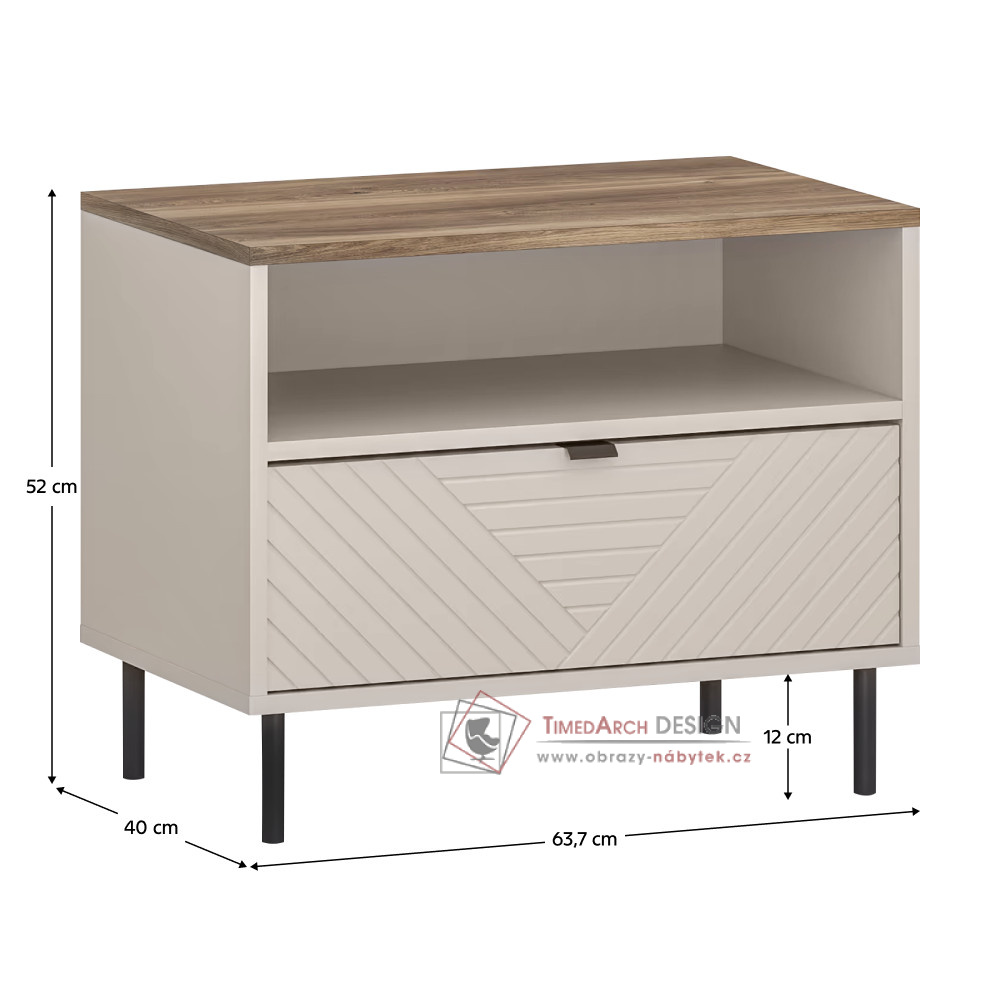 Noční stolek EYCO 1S vám nabízí úložný prostor v podobě jednoho šuplíku a otevřeného úložného prostoru . Vyniká svým praktickým využitím.