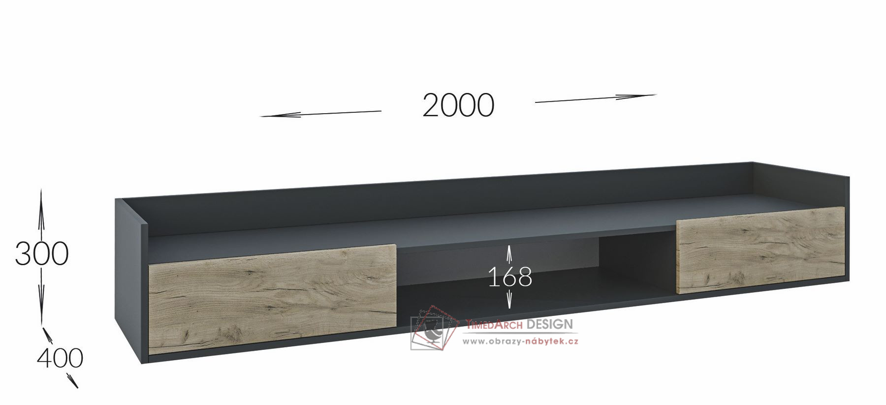 Nábytek je vyrobený z kvalitní laminované DTD v kombinaci barevného provedení antracit / dub kraft šedý.