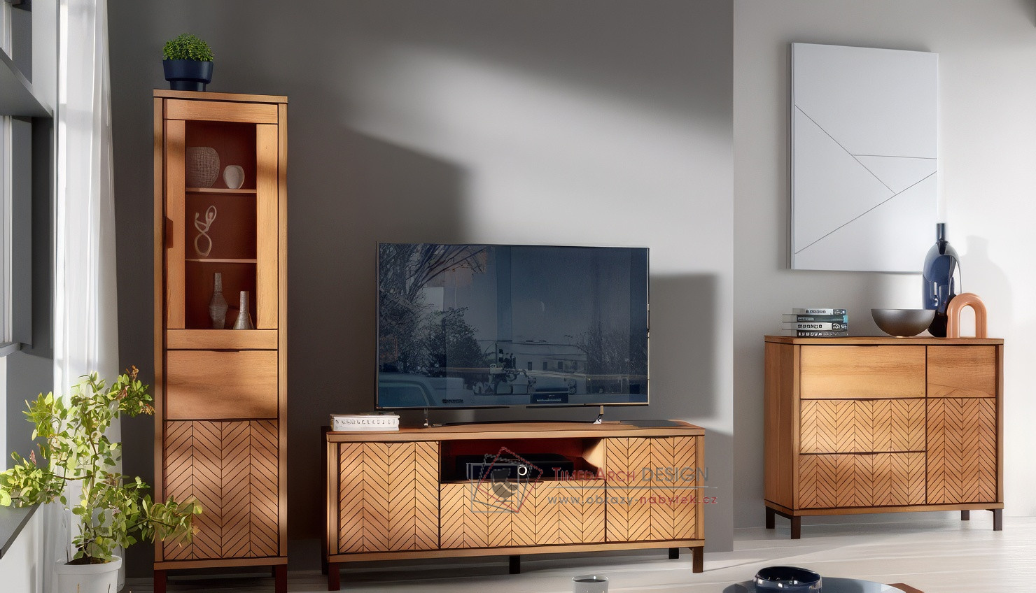 Komoda s vitrínou 3-dveřová z nábytkové řady KERBIS.
