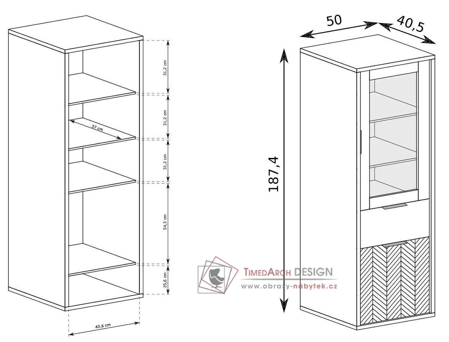- vitrína 2-dveřová se zásuvkou