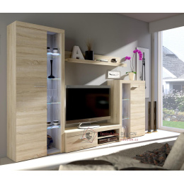 Moderní obývací stěna RUMBA je vyrobená z laminované DTD v barevném provedení dub sonoma.