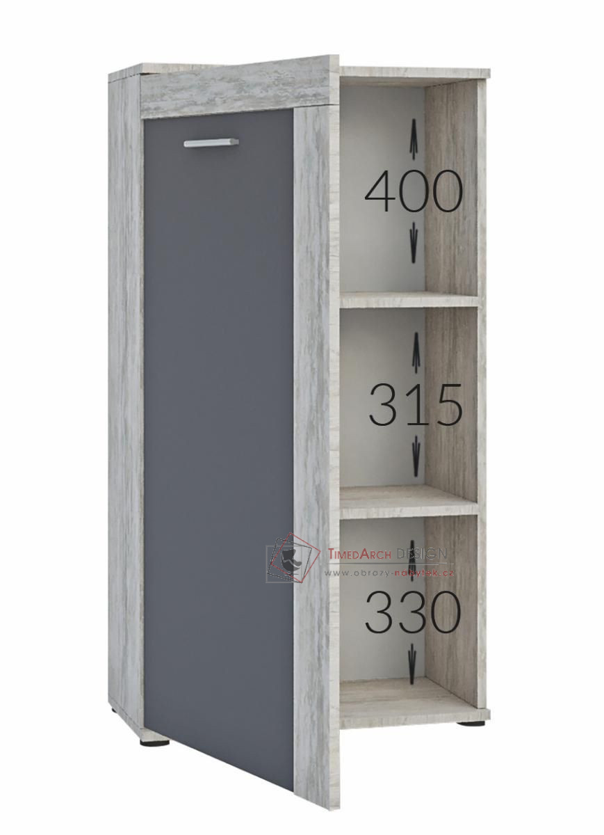 Sestava se skládá z televizního stolku, vitríny, komody a police. ( šířka/výška/hloubka ):
