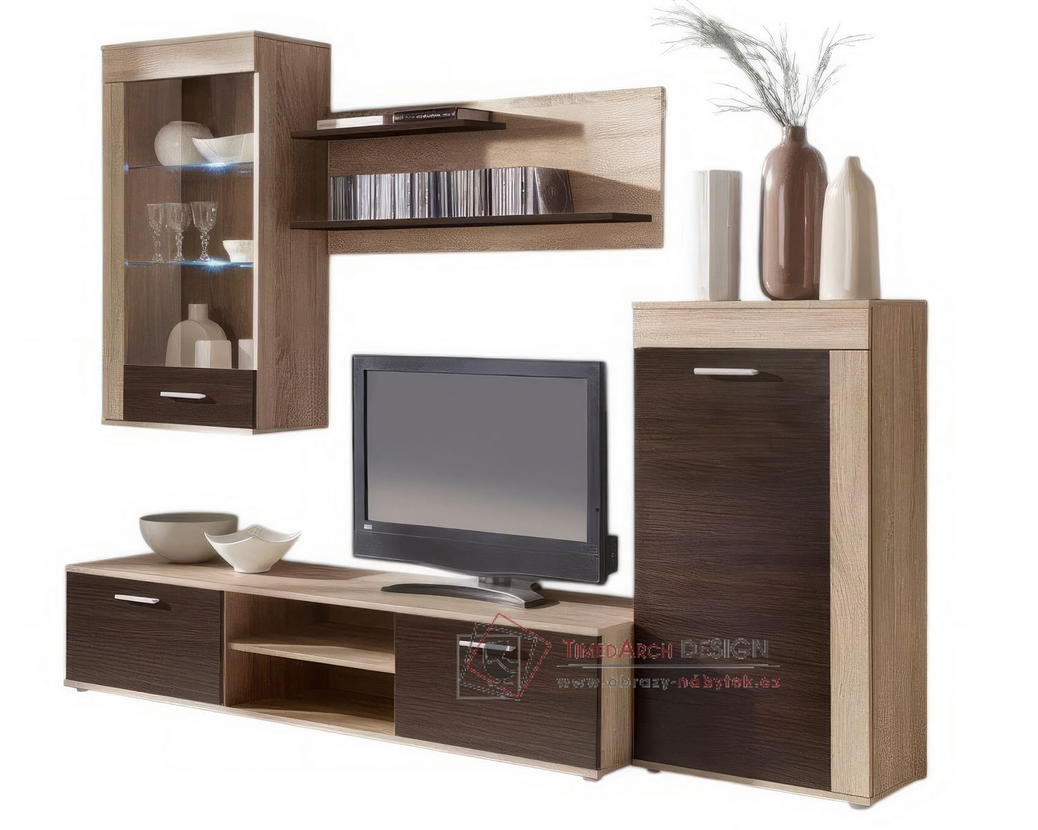 Moderní obývací stěna VITO je vyrobená z laminované DTD v kombinaci barevného provedení dub sonoma / wenge.