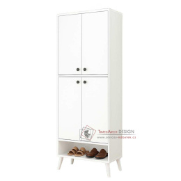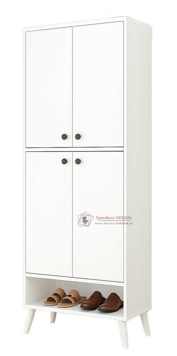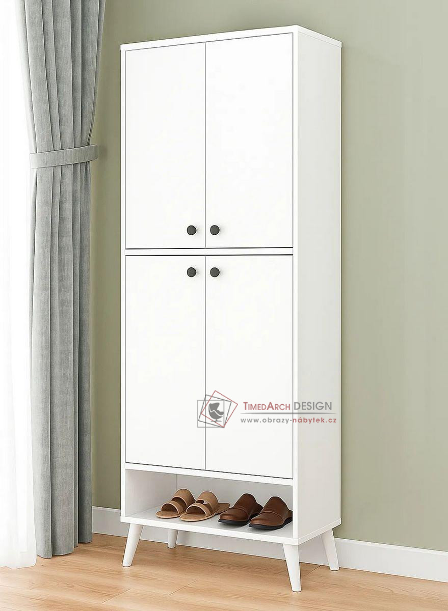 Praktická víceúčelová skříň se 4-mi dveřmi a 4-mi policemi, vhodná jako botník, úložná skříňka do koupelny, kávový koutek nebo pro využití na balkon.