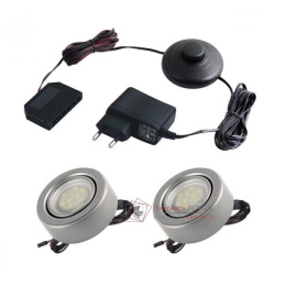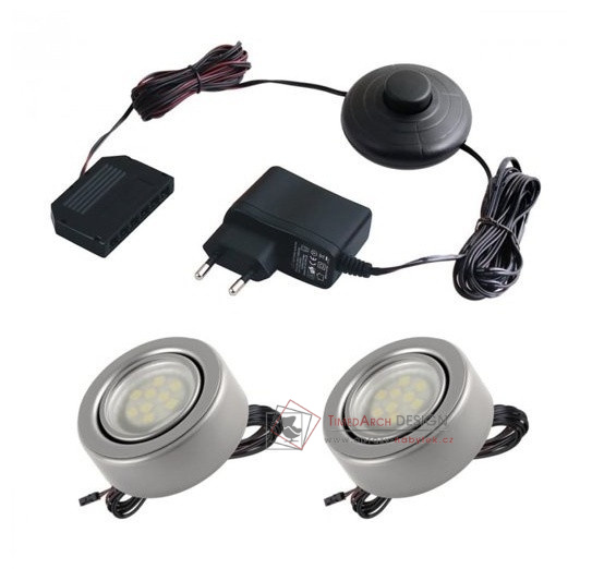 Sestava podvěncového osvětlení. Skládá se z 2 ks bodovky a 1 ks transformátoru. Světlo je bílé teplé LED. Vhodné třeba k nábytku Porti 48, Velvet 48 nebo Ice 02 a 03..