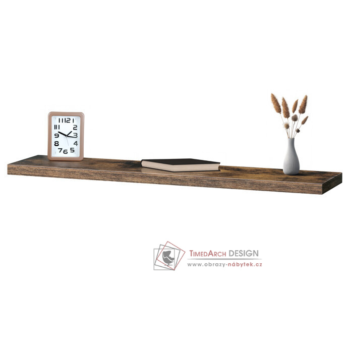 Nástěnná polička o šířce 120cm je vyrobena z MDF materiálu s povrchovou úpravou, která dodává moderní a čistý vzhled.