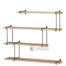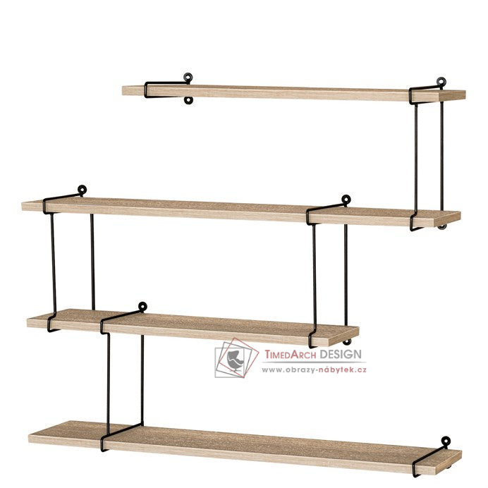 Nástěnné poličky P-065 OAK je vyrobená z MDF v dekoru dub a kovu černé barvy.