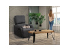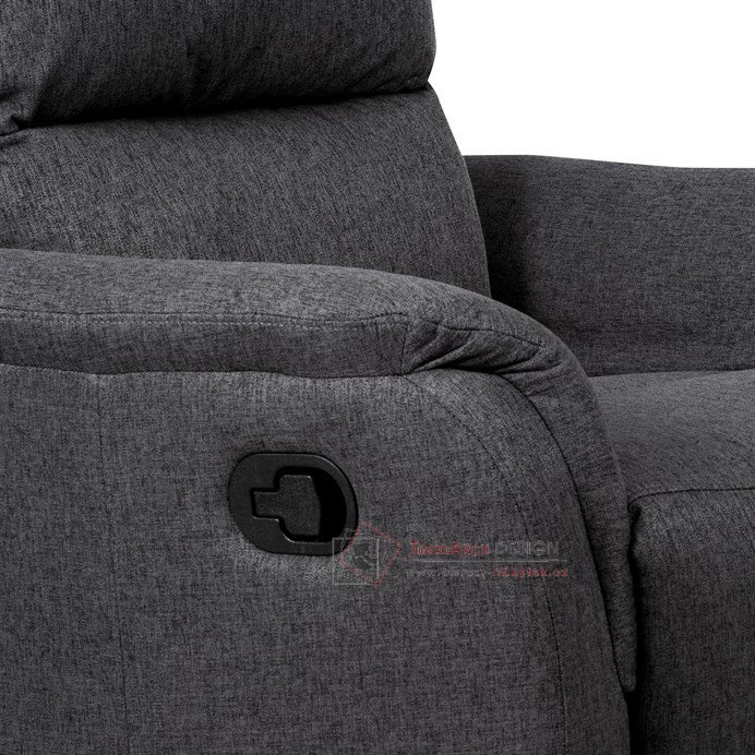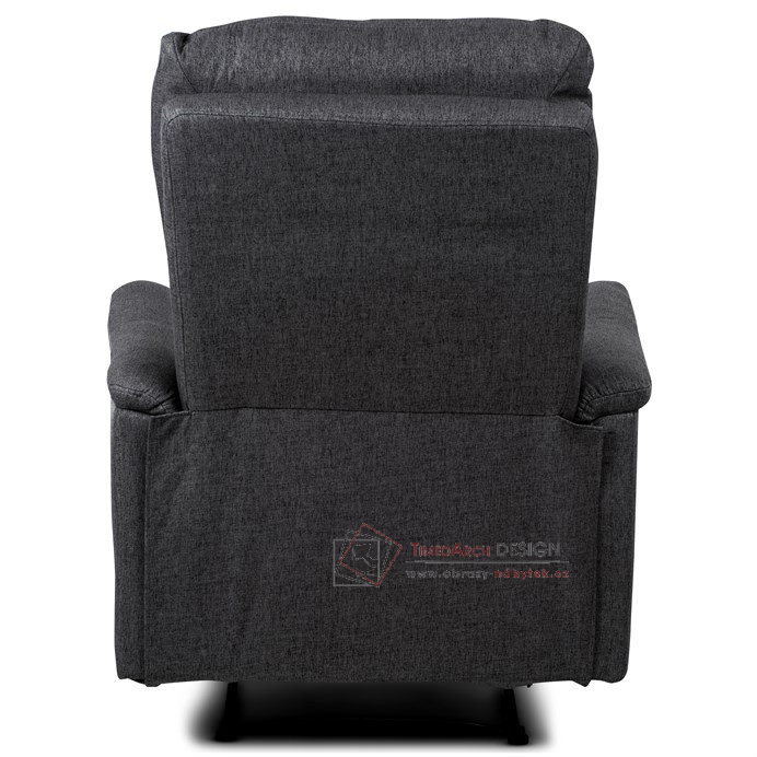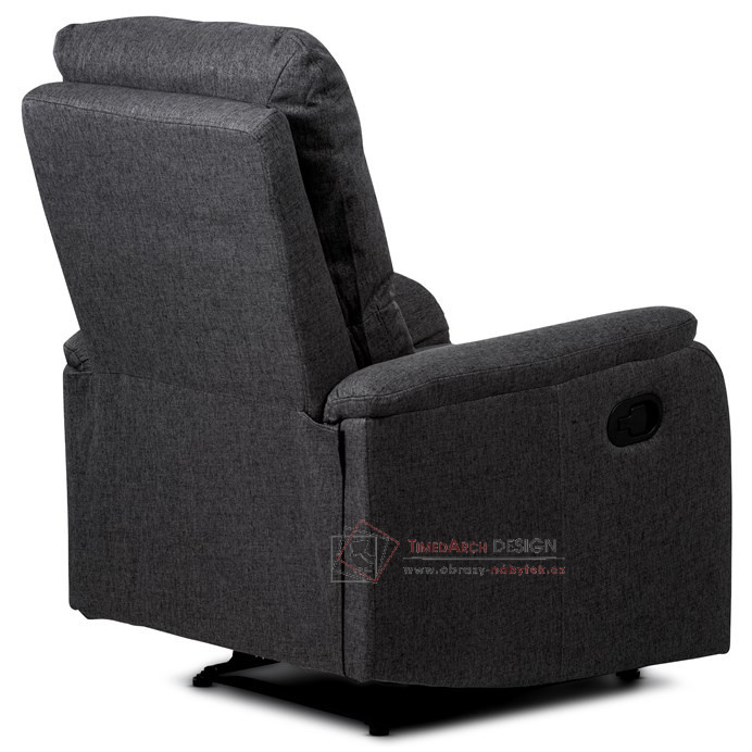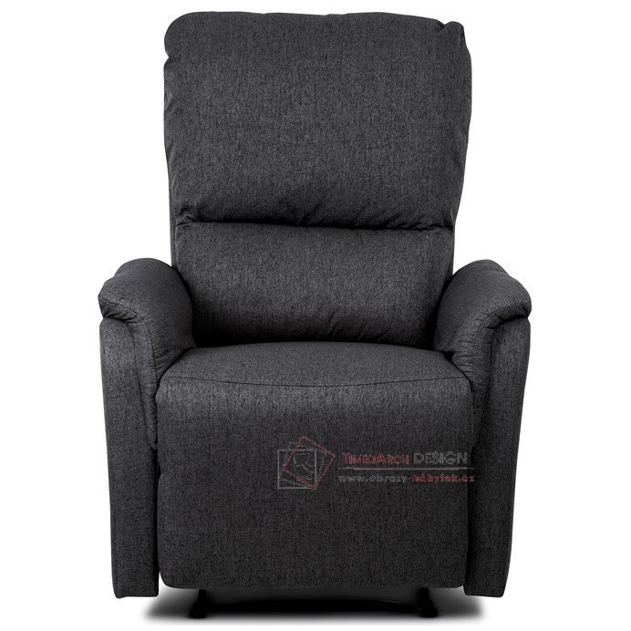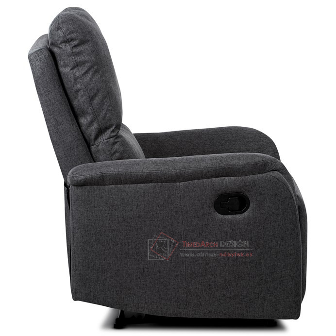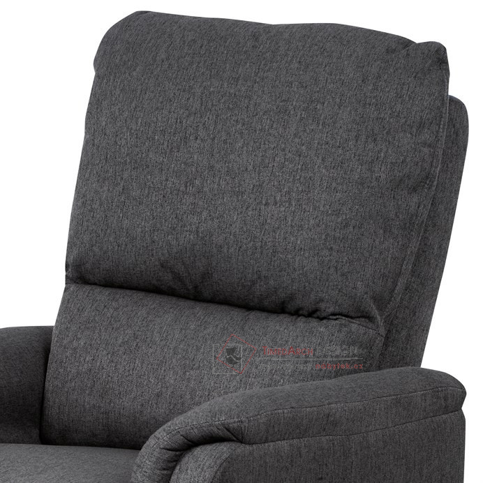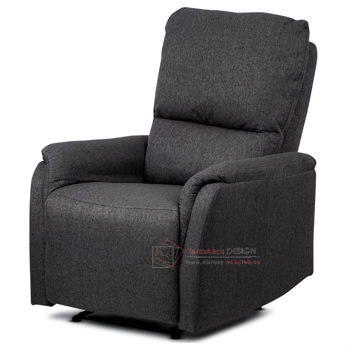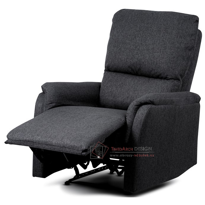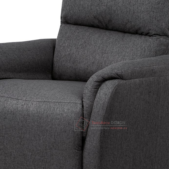 Klasické relaxační TV křeslo v látkovém potahu v temně šedém barevném odstínu a prošitím ve stejném provedení.