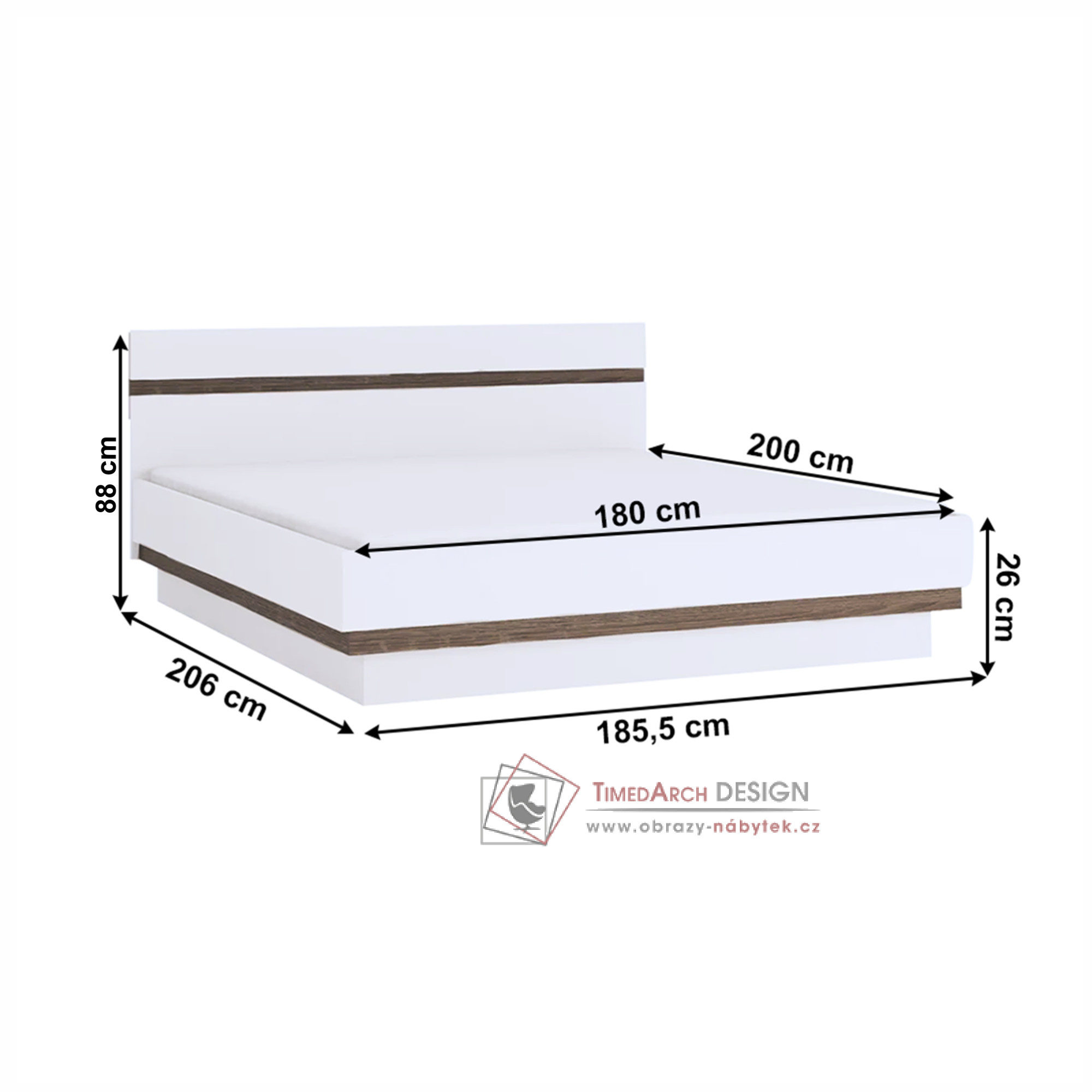 Postel 180 LYNATET 93 přinese do vašeho domova závan luxusu, elegance a stylu. Snadno se kombinuje is dalším nábytkem díky barevnému provedení bílá a dub sonoma truflový. Postel má moderní zaoblené hrany. Německý design s elegantními hnědými doplňky dodá celé místnosti ten správný šmrnc. Čistou krásu a stylový design v sobě postel 180 LYNATET 93 rozhodně nezapře.