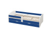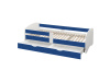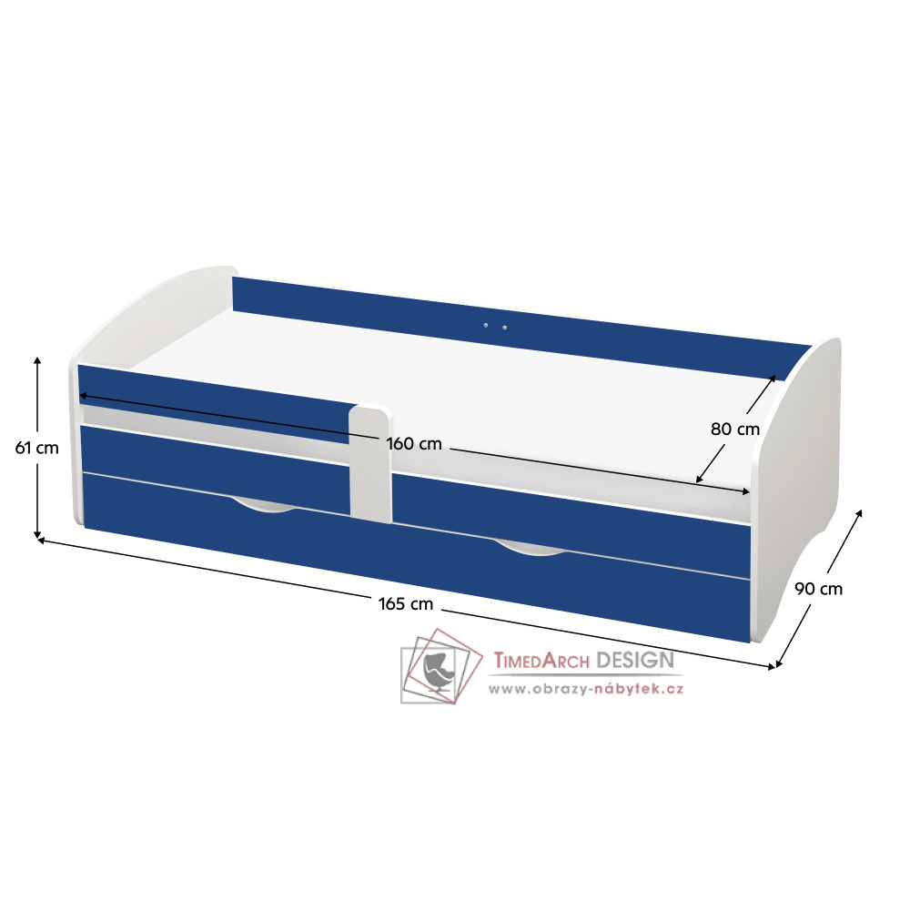 Vyrobena je z laminované dřevotřísky o tloušťce materiálu 1,8 cm. Disponuje praktickým úložným prostorem v podobě dvou šuplíků na kolečkách. Můžete jej využít k odkládání ložního prádla nebo hraček. COCOLINO je dodávána s lamelovým roštem, bez matrace. Součástí postele je odnímatelná zábrana.