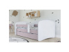 Vyrobena je z laminované dřevotřísky o tloušťce materiálu 1,8 cm. Disponuje praktickým úložným prostorem v podobě dvou šuplíků na kolečkách. Můžete jej využít k odkládání ložního prádla nebo hraček. COCOLINO je dodávána s lamelovým roštem, bez matrace. Součástí postele je odnímatelná zábrana.