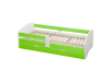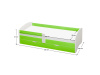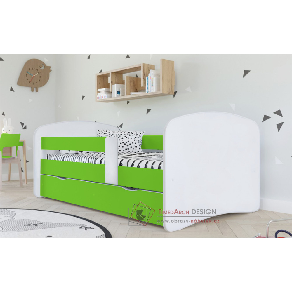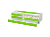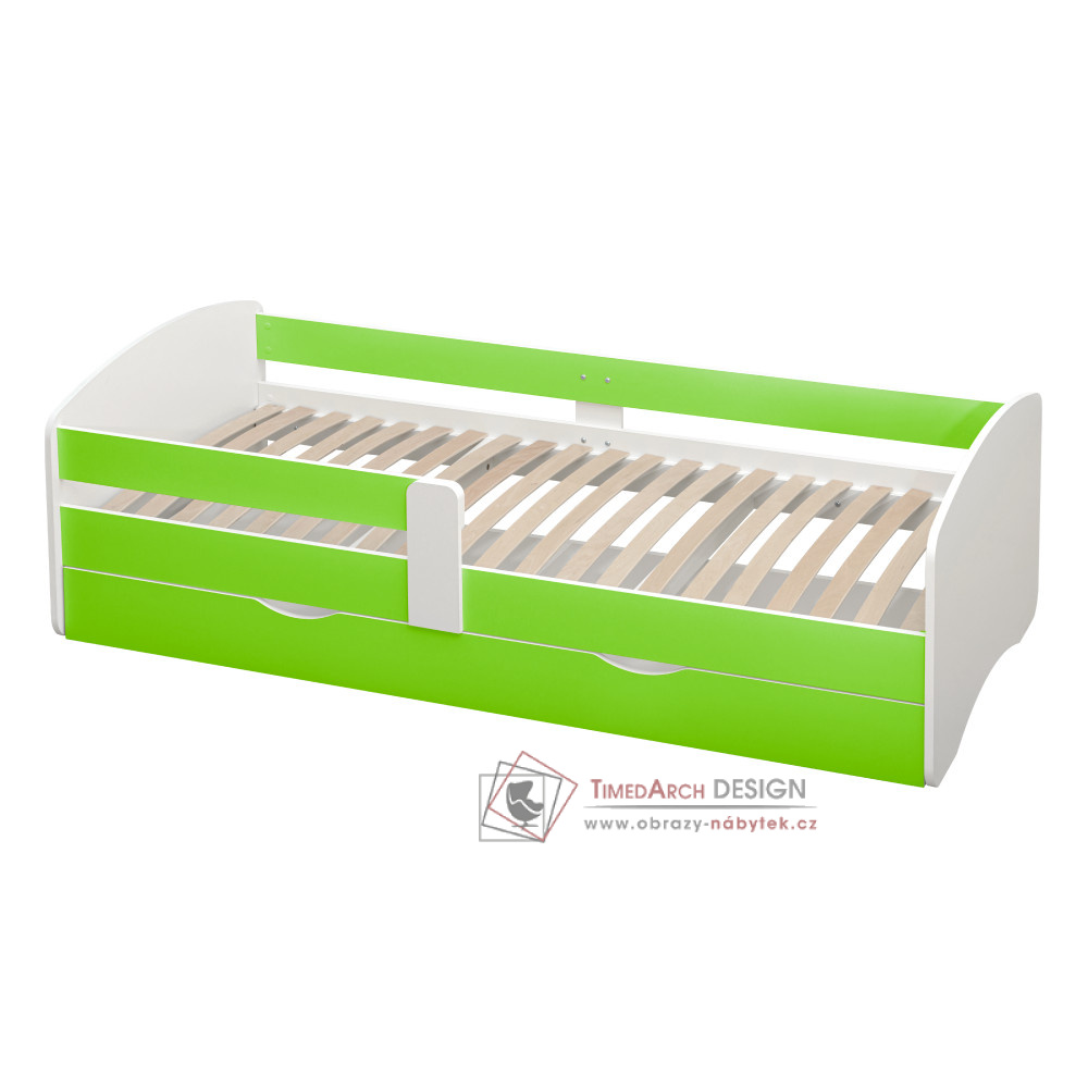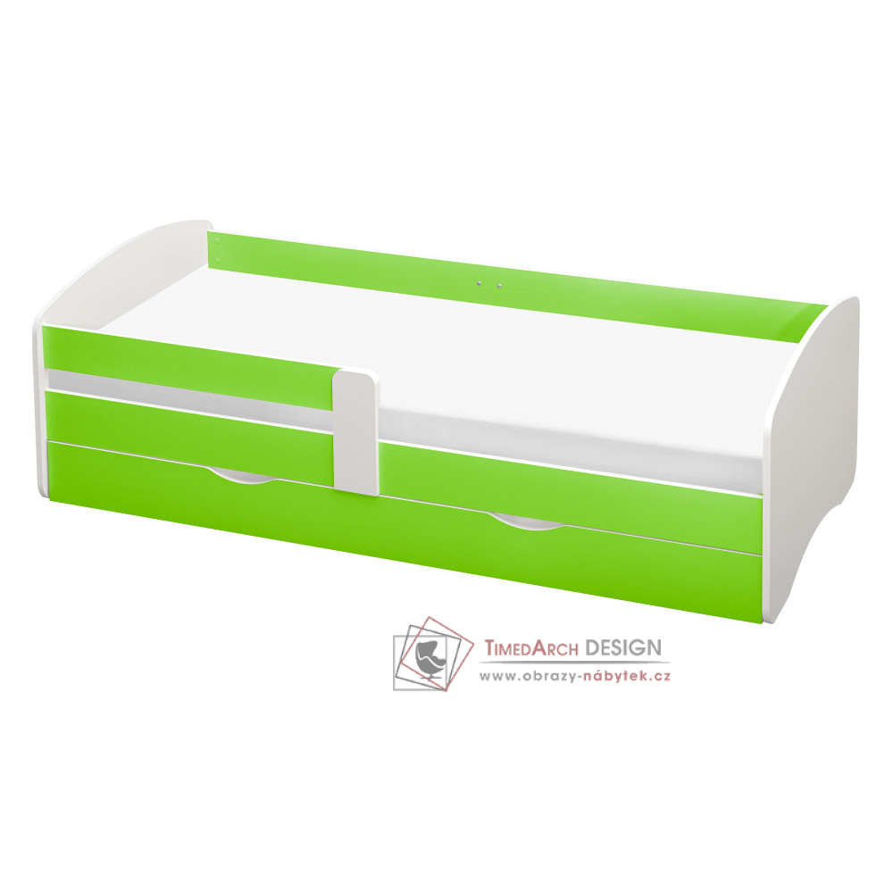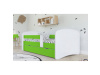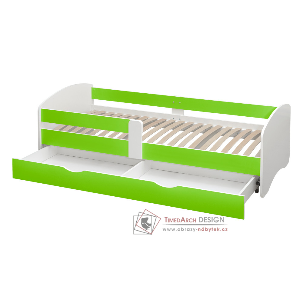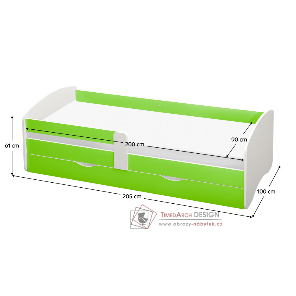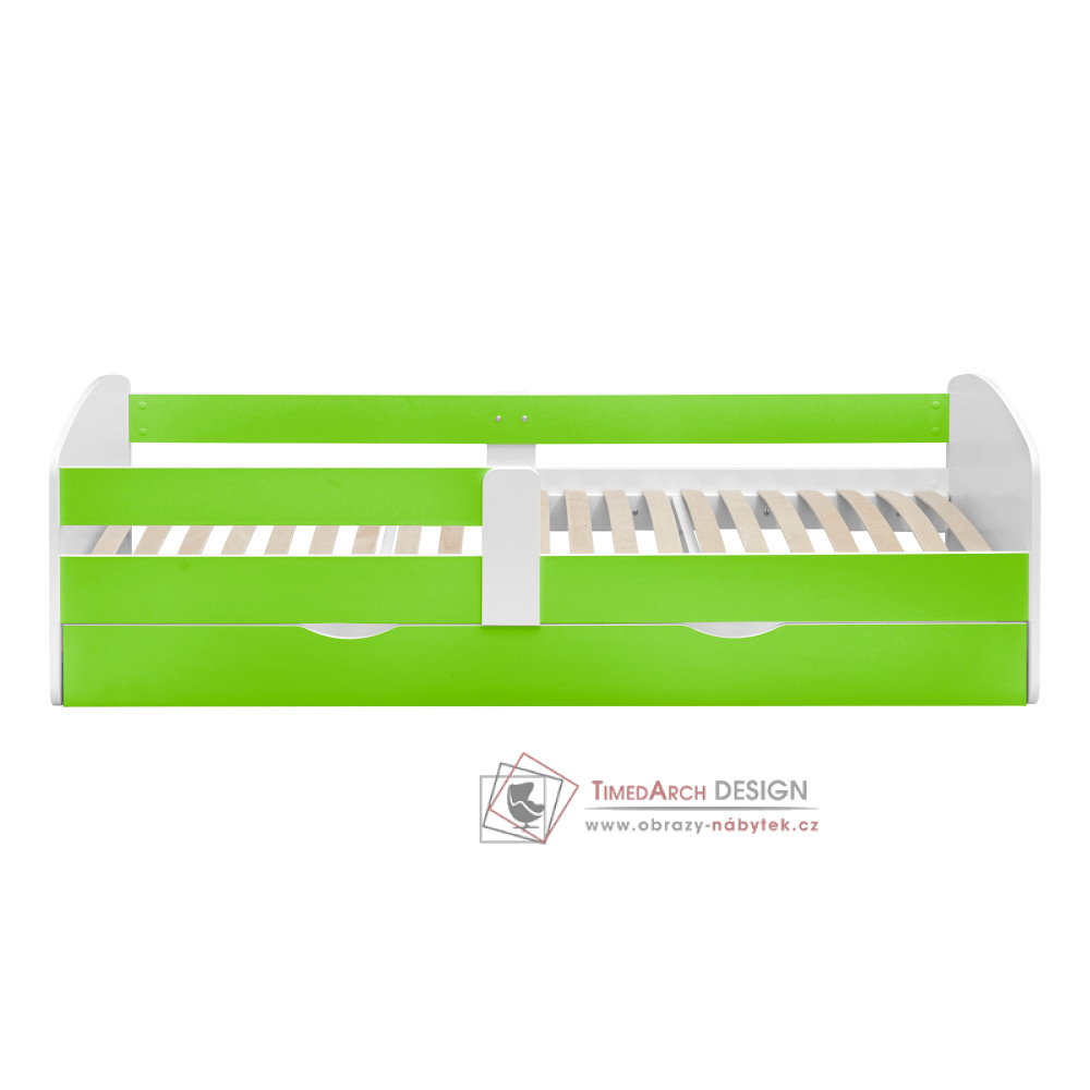 Vyrobena je z laminované dřevotřísky o tloušťce materiálu 1,8 cm. Disponuje praktickým úložným prostorem v podobě dvou šuplíků na kolečkách. Můžete jej využít k odkládání ložního prádla nebo hraček. COCOLINO je dodávána s lamelovým roštem, bez matrace. Součástí postele je odnímatelná zábrana.