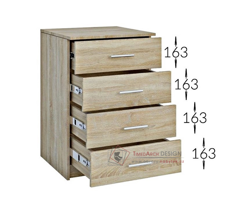 Kontejner k pracovnímu stolu se 4-mi zásuvkami OFFICE je vyrobený z laminované DTD v barevném provedení dub sonoma.