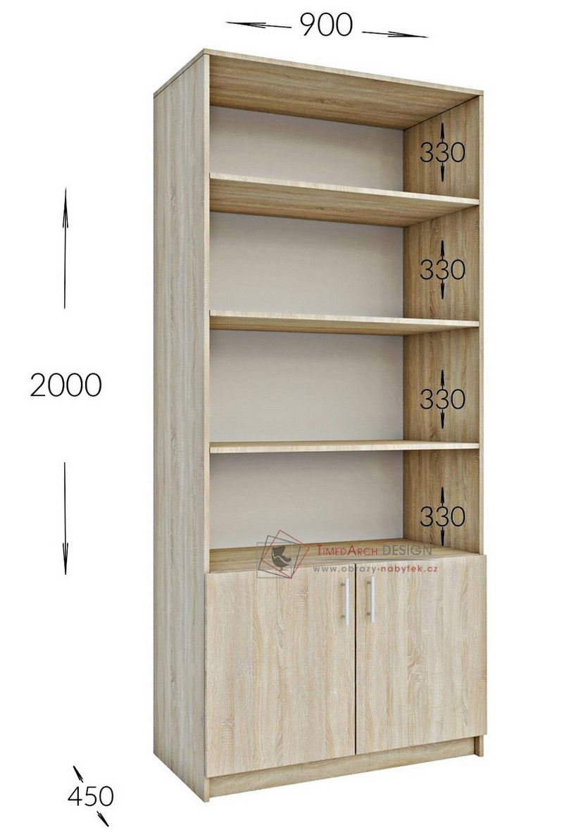 Praktický regál s dvířky a policemi vhodný na zakládaní šanonů, knih a jiných pracovních dokumentů.