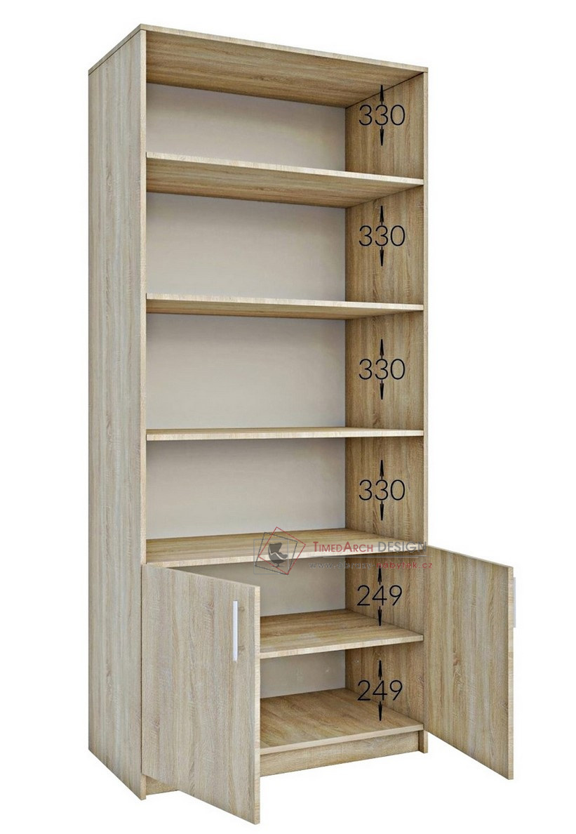 Praktický regál s dvířky a policemi vhodný na zakládaní šanonů, knih a jiných pracovních dokumentů.