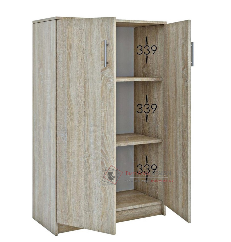 2-dveřová skříň s policemi OFFICE III je vyrobená z laminované DTD v barevném provedení dub sonoma.