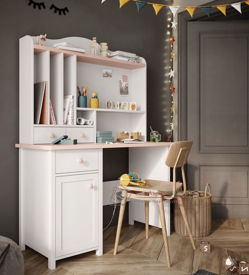 Knihovna se zásuvkou POLONA 02 z nábytkové řady určené zejména pro zařízení dětského pokoje pro malé princezny nebo i studentského pokoje pro větší slečny.