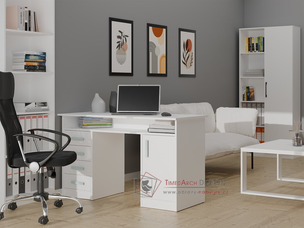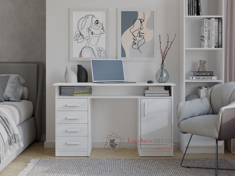 Hodí se do moderních i minimalistických interiérů — od studentského pokoje až po domácí pracovnu. Je vyrobený z vysoce kvalitního a snadno udržovatelného lamina.