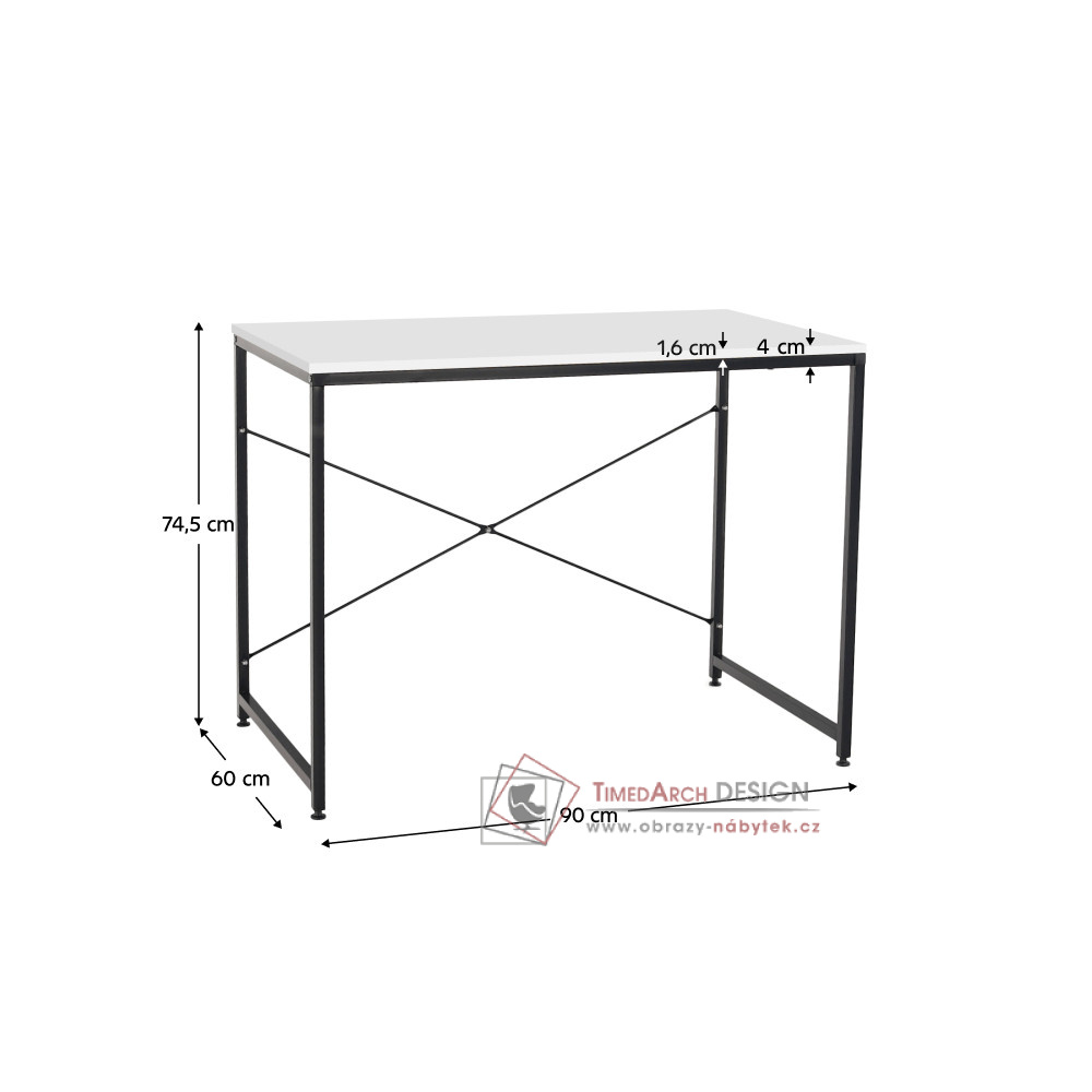Konstrukci tvoří kov v černém provedení a stoln í deska je z DTD laminované v bílém provedení. Na nohách se nacházejí rektifikační šrouby, kterými vyrovnáte stůl do roviny na jakékoliv podlaze. Prostorný, zajímavý, vhodný i do dětského či studentského pokoje.