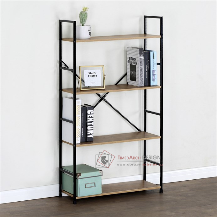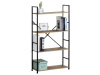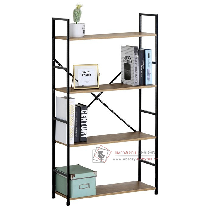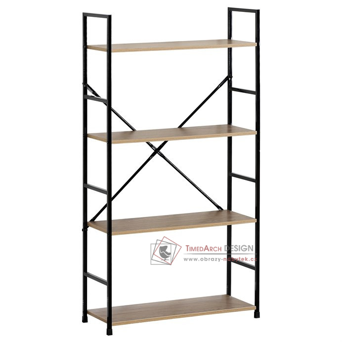 Kostra vyrobena z kovových hranatých profilů černé barvy. Na police je použita MDF deska s povrchovou úpravou 3D folie v textuře dubu. Pro lepší stabilitu je na zadní straně kovová výztuha ve tvaru písmene X. Balení obsahuje sadu umožňující připevnění ke stěně.