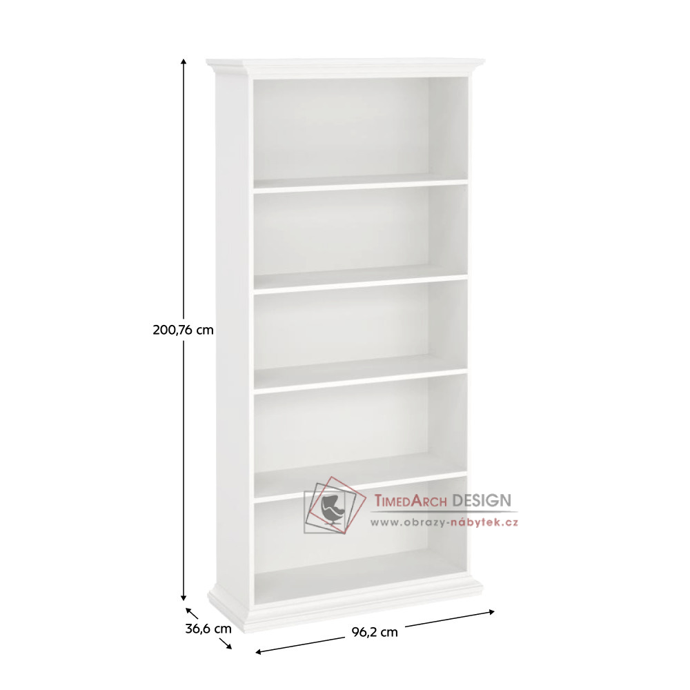 Regál PARIS 79864 plní praktickou i designovou funkci. Poskytuje dostatek úložného prostoru v podobě otevřených polic. Čtyři police předělují prostor na pět úložných ploch.