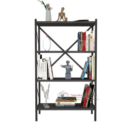 Konstrukce regálu je kovová černé barvy. Police jsou vyrobené z laminované DTD v barevném provedení borovice.