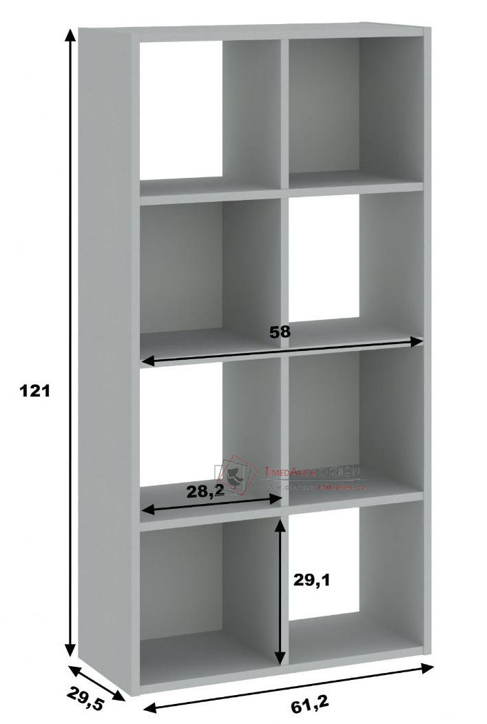 Vysoký regál s 8-mi policemi je vyroben z kvalitní laminované DTD nenáročné na údržbu v šedém provedení.