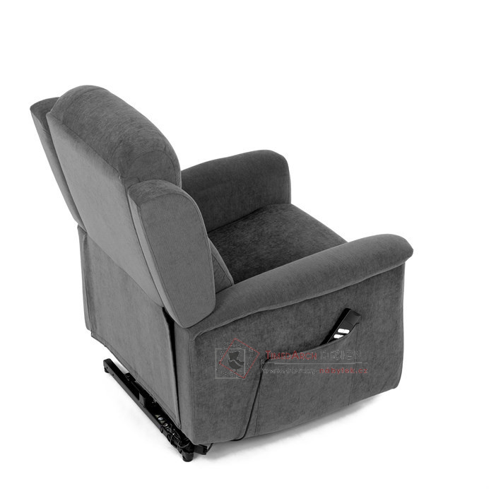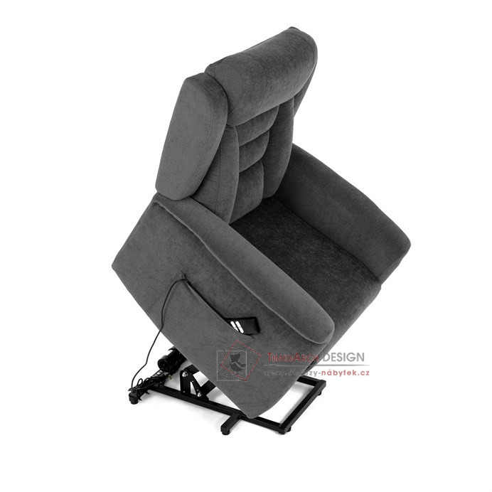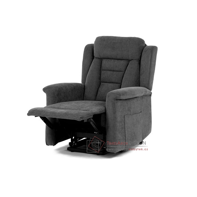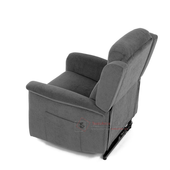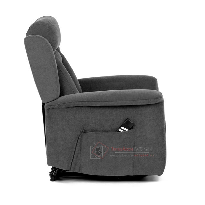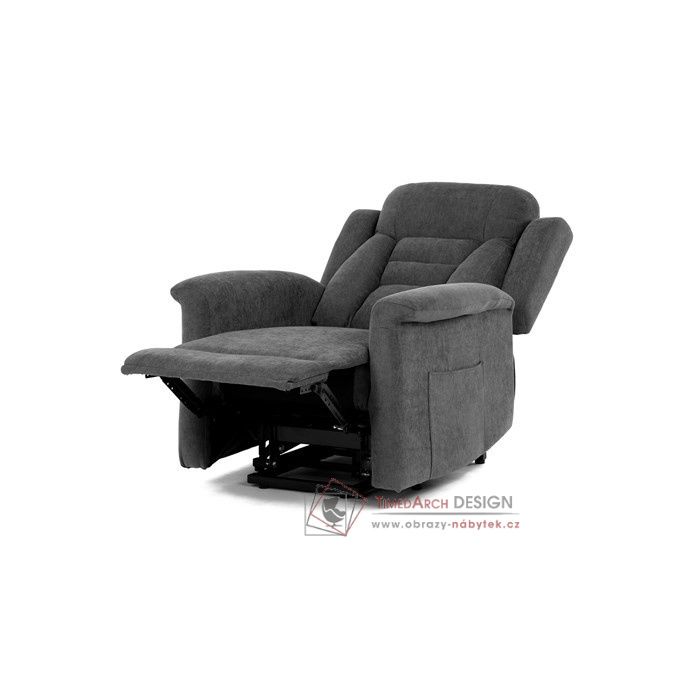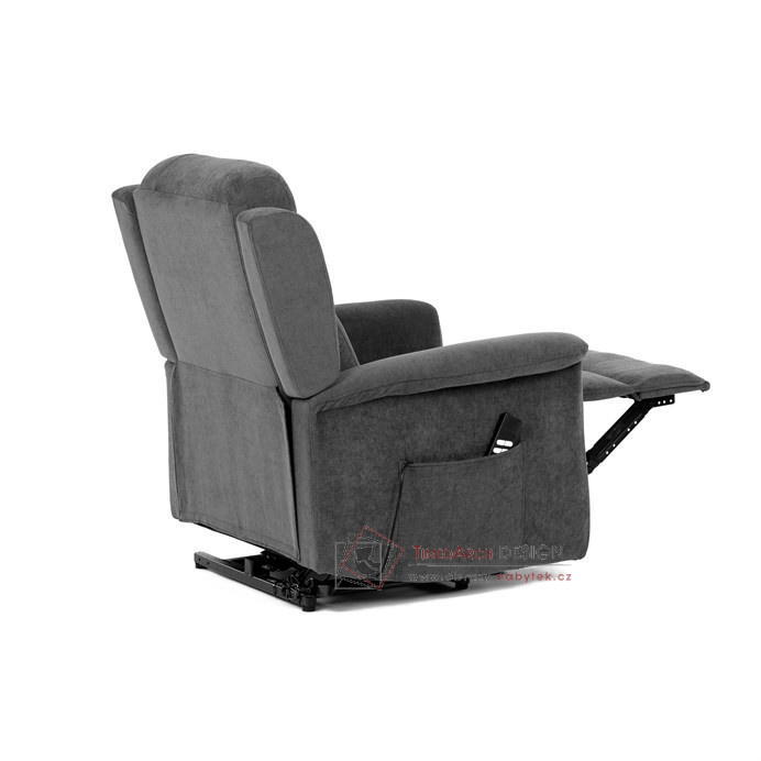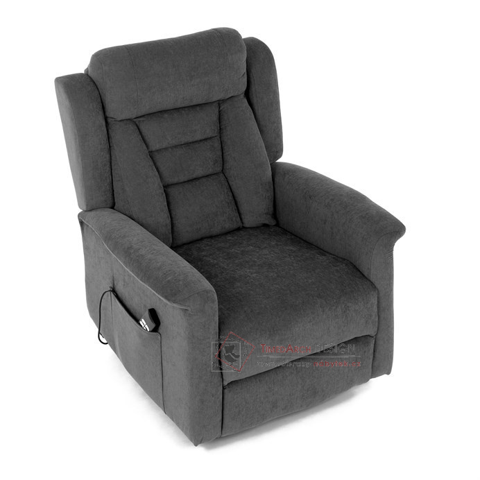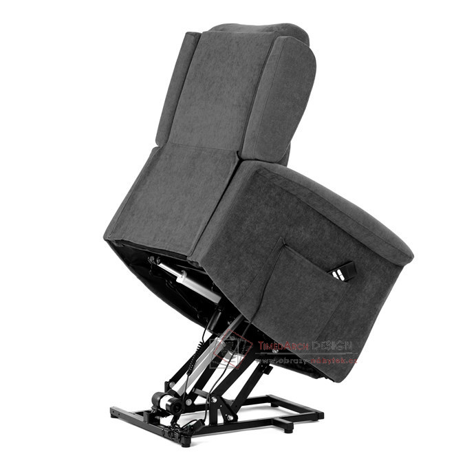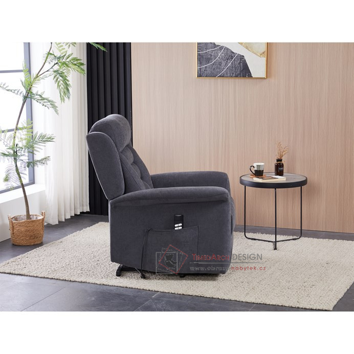Jeho moderní šedé čalounění z hladké látky zajišťuje příjemný dotek a snadnou údržbu. Díky elektrickému ovládání a dvěma motorům lze křeslo snadno polohovat. Speciální výklopná funkce usnadňuje vstávání. Polstrované područky a ergonomický tvar poskytují dokonalou oporu při odpočinku. Tento stylový a praktický kus nábytku perfektně doplní každý interiér a přinese do vašeho domova kousek luxusu i pohodlí.