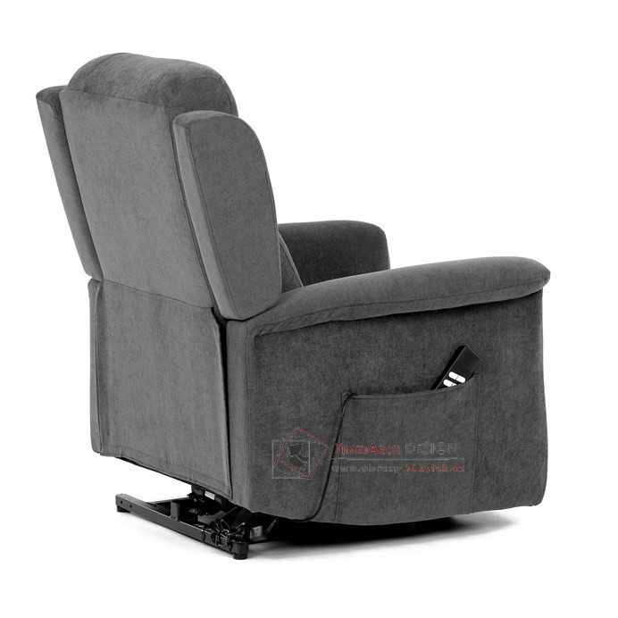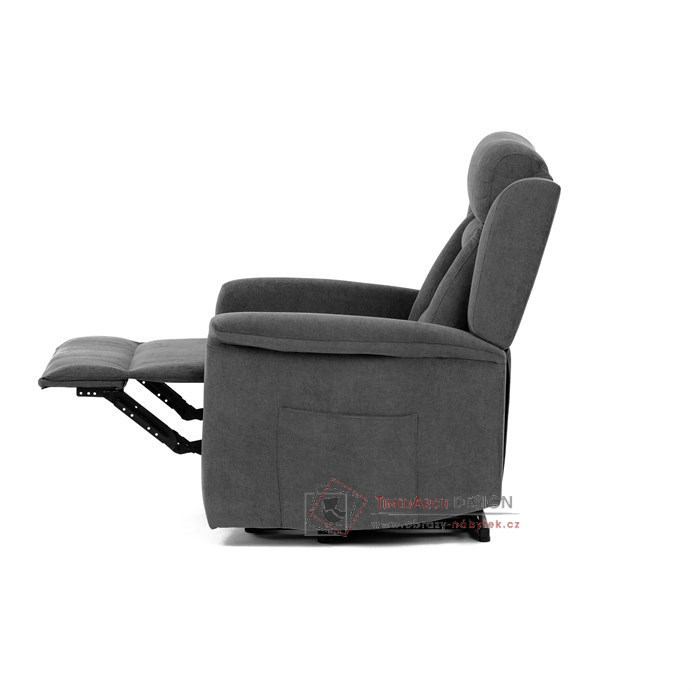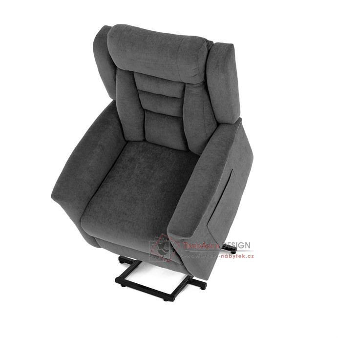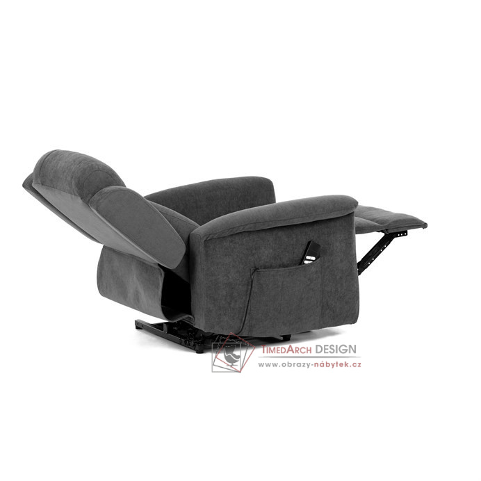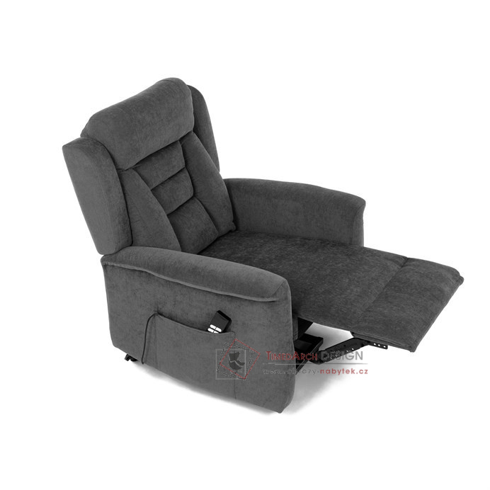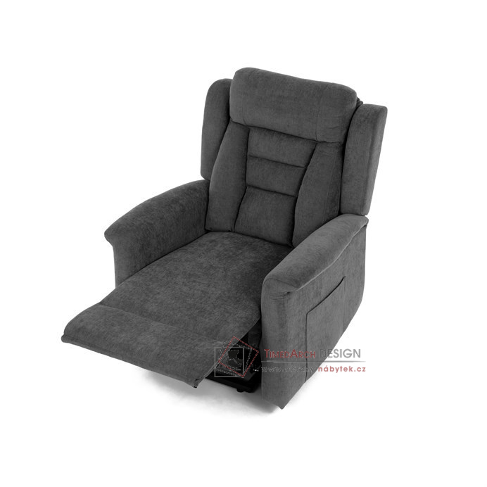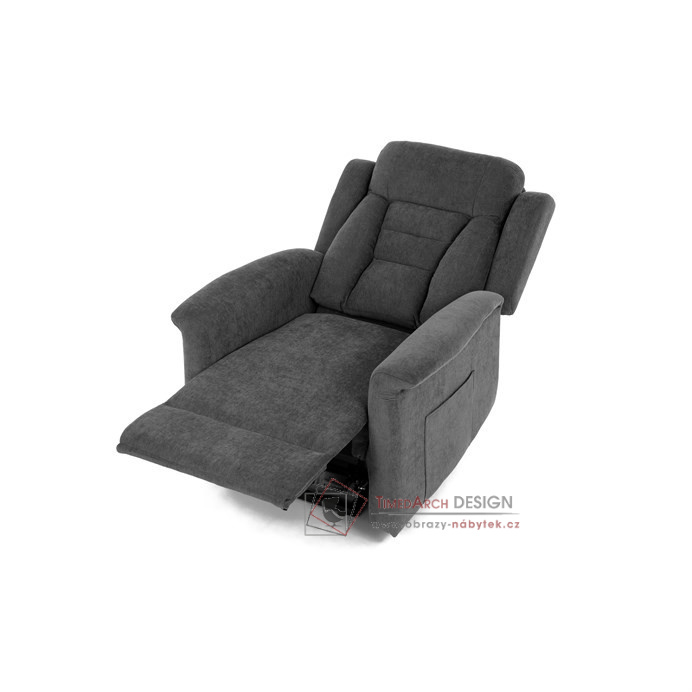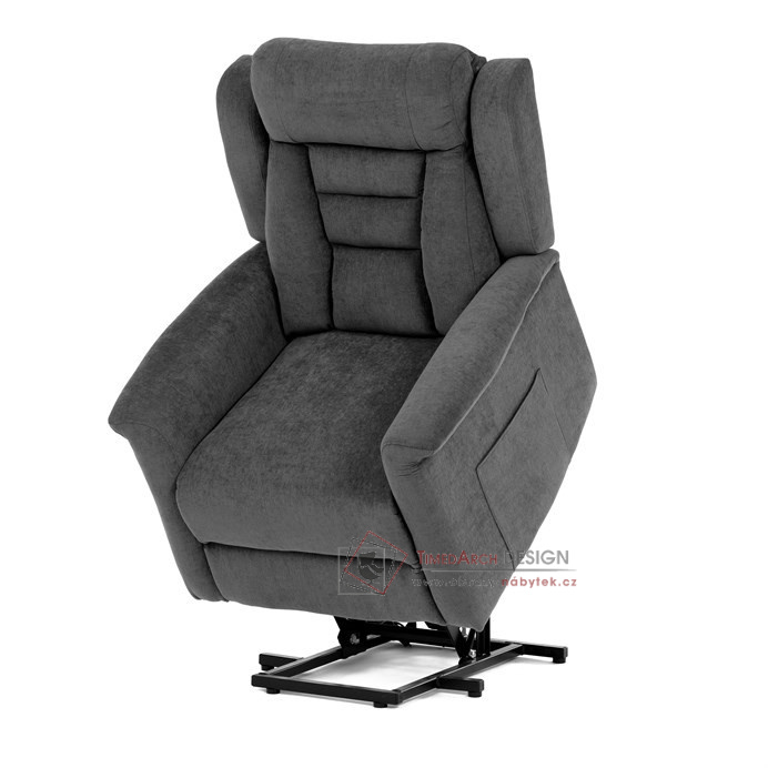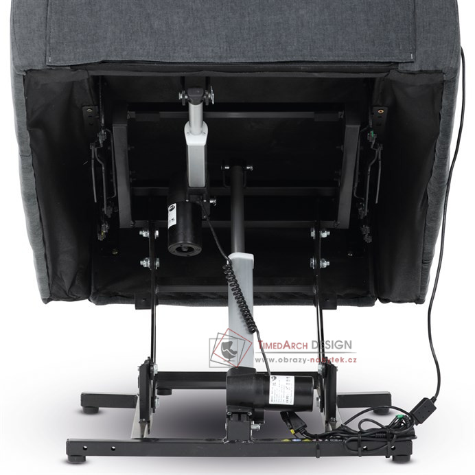 Jeho moderní šedé čalounění z hladké látky zajišťuje příjemný dotek a snadnou údržbu. Díky elektrickému ovládání a dvěma motorům lze křeslo snadno polohovat. Speciální výklopná funkce usnadňuje vstávání. Polstrované područky a ergonomický tvar poskytují dokonalou oporu při odpočinku. Tento stylový a praktický kus nábytku perfektně doplní každý interiér a přinese do vašeho domova kousek luxusu i pohodlí.