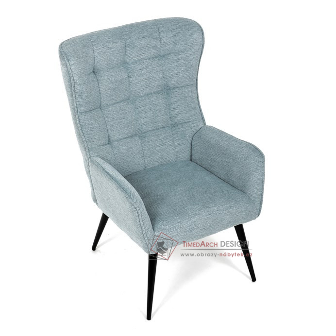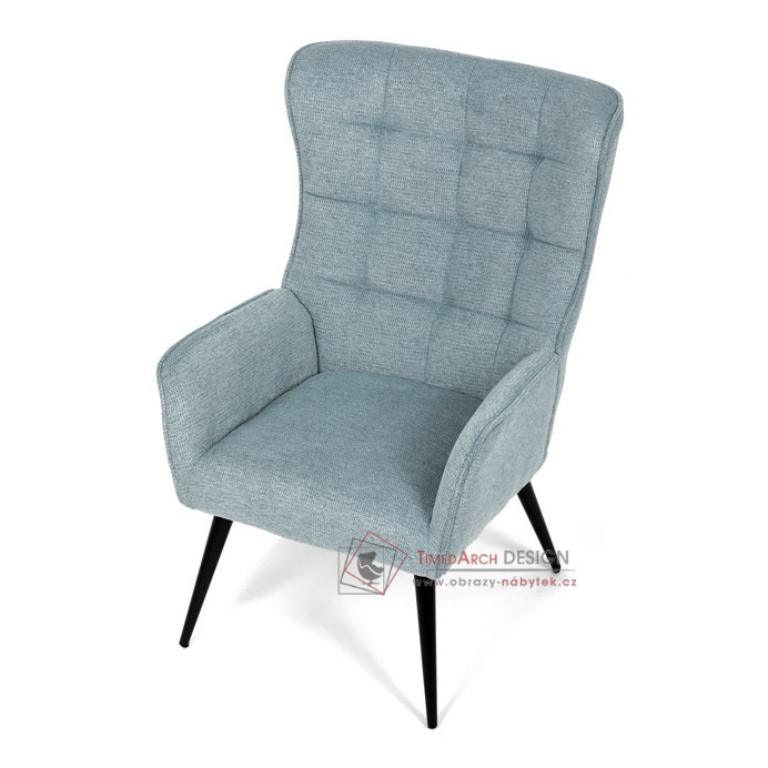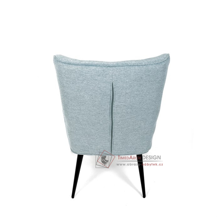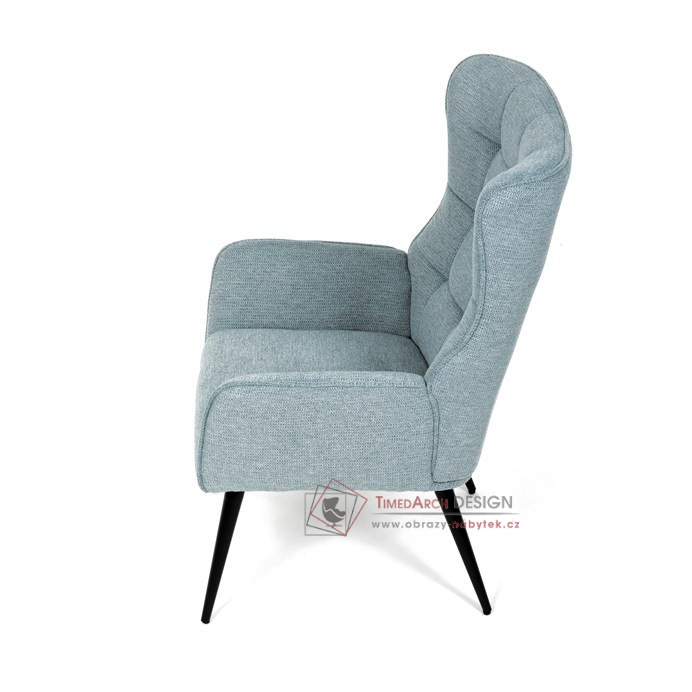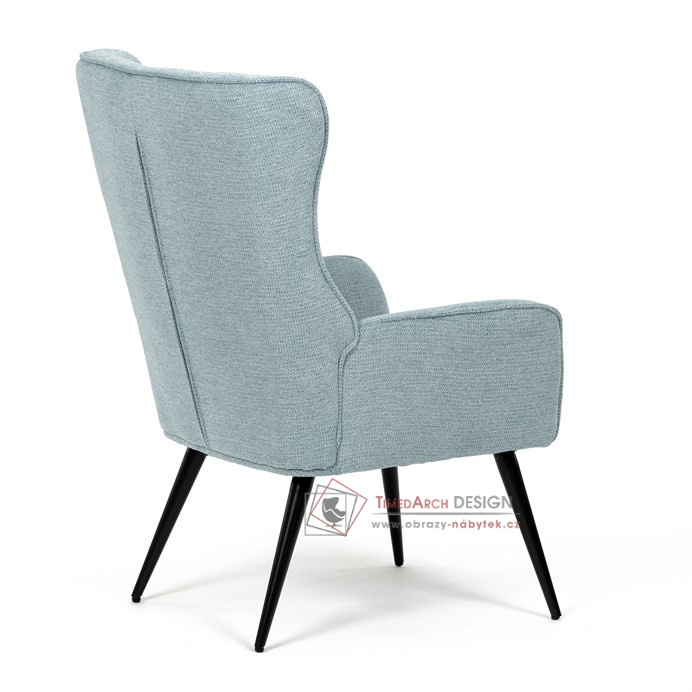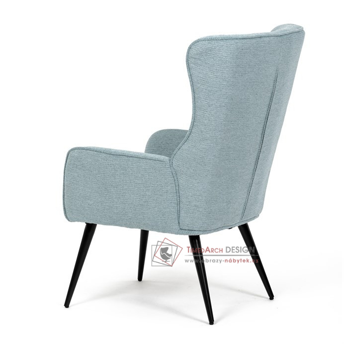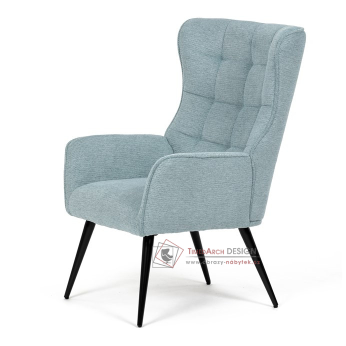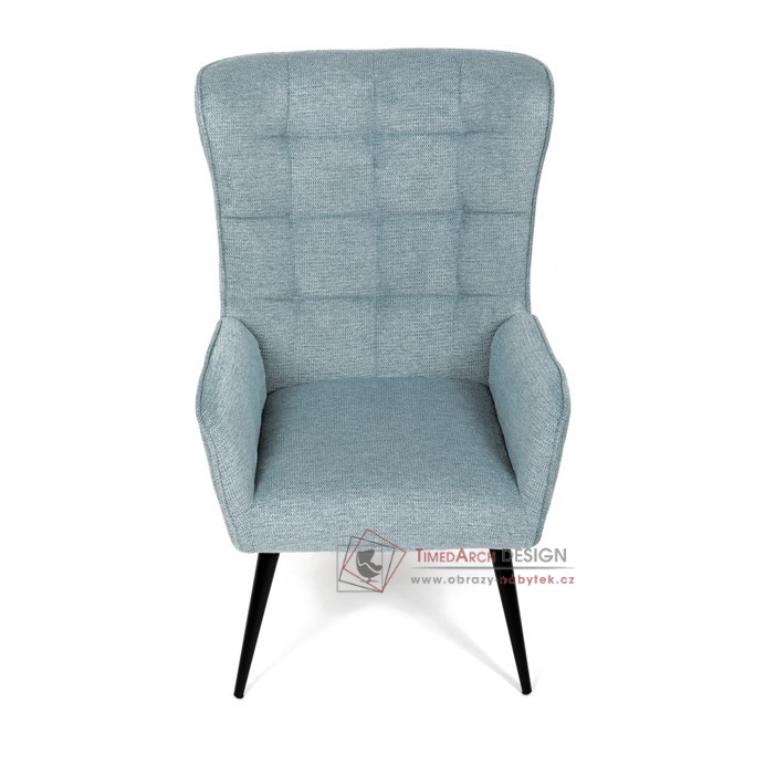Potah je vyroben z voděodolné zelené látky, která usnadňuje údržbu a zvyšuje odolnost vůči polití. Sedák a opěradlo jsou zdobeny designovým prošitím, které dodává křeslu výrazný estetický detail. Konstrukce je podpořena pevnými kovovými nohami, které jsou doplněny o masivní dřevěné prvky z kaučukovníku, což zajišťuje stabilitu a dlouhou životnost. Křeslo je vybaveno integrovanými područky pro pohodlné opření paží a není otočné ani rozkládací, což podtrhuje jeho jednoduchost a funkčnost.