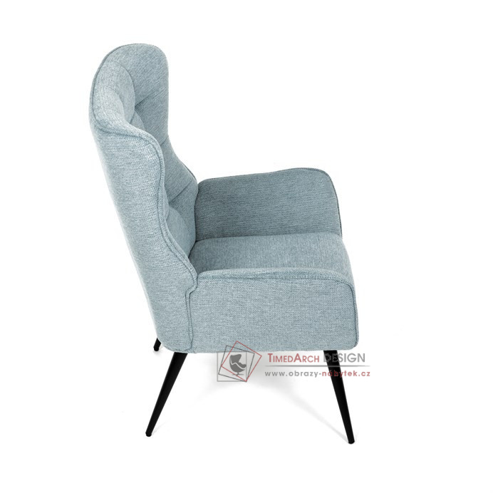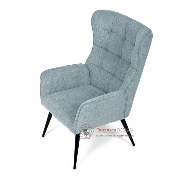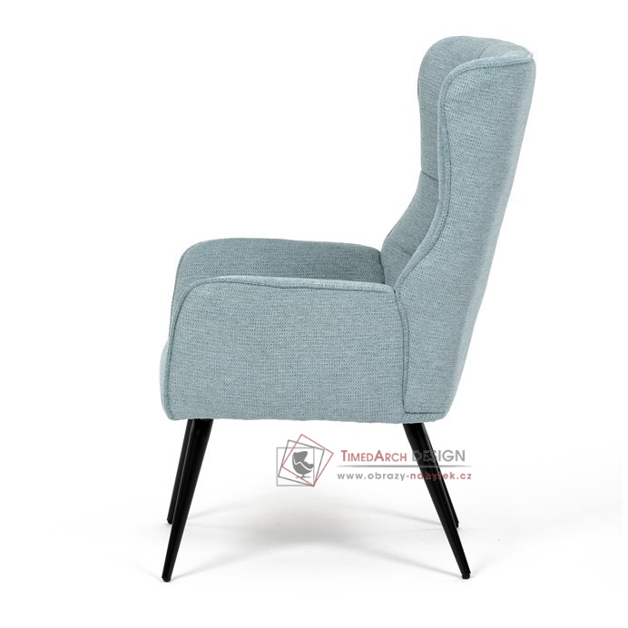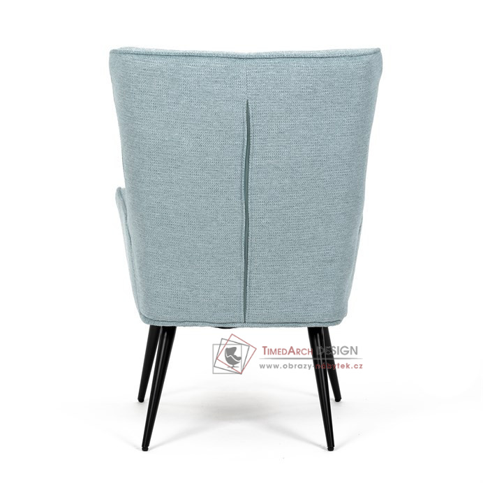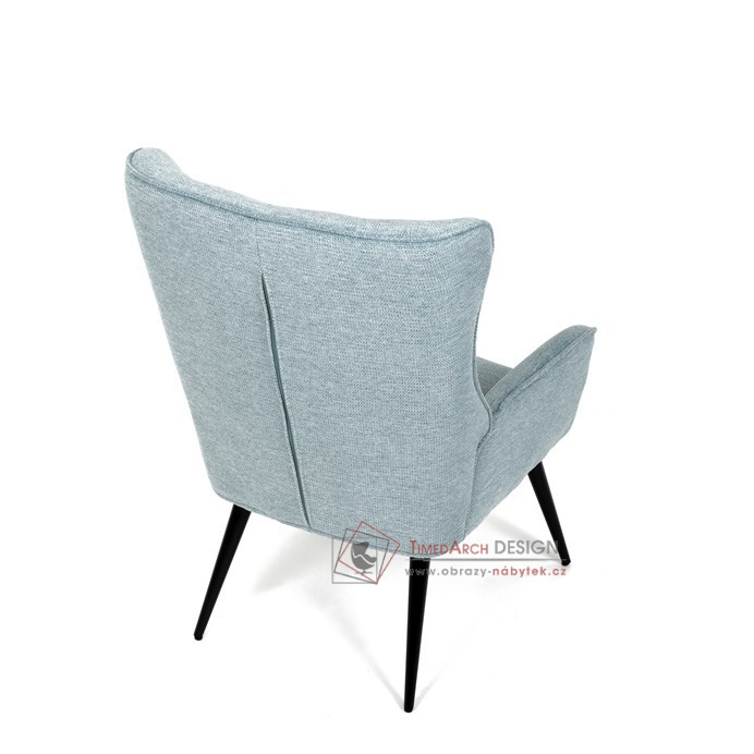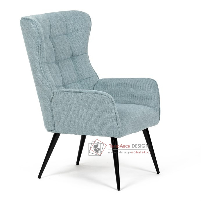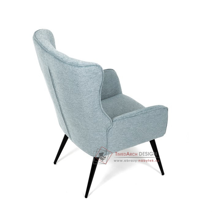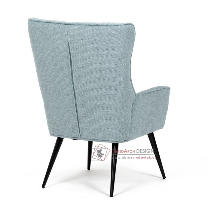 Potah je vyroben z voděodolné zelené látky, která usnadňuje údržbu a zvyšuje odolnost vůči polití. Sedák a opěradlo jsou zdobeny designovým prošitím, které dodává křeslu výrazný estetický detail. Konstrukce je podpořena pevnými kovovými nohami, které jsou doplněny o masivní dřevěné prvky z kaučukovníku, což zajišťuje stabilitu a dlouhou životnost. Křeslo je vybaveno integrovanými područky pro pohodlné opření paží a není otočné ani rozkládací, což podtrhuje jeho jednoduchost a funkčnost.