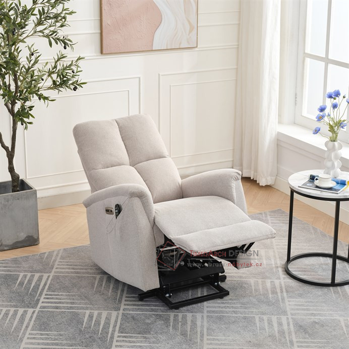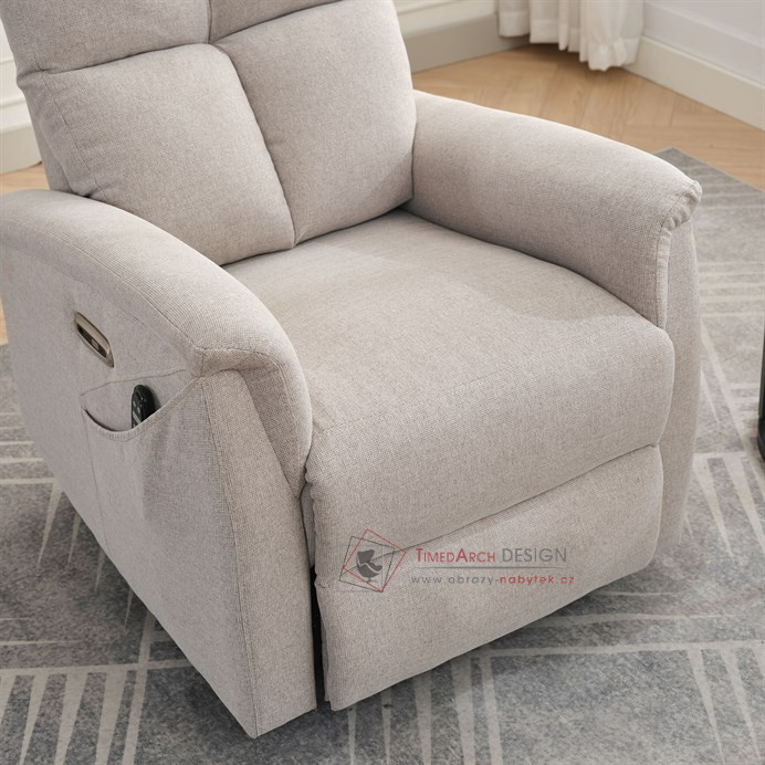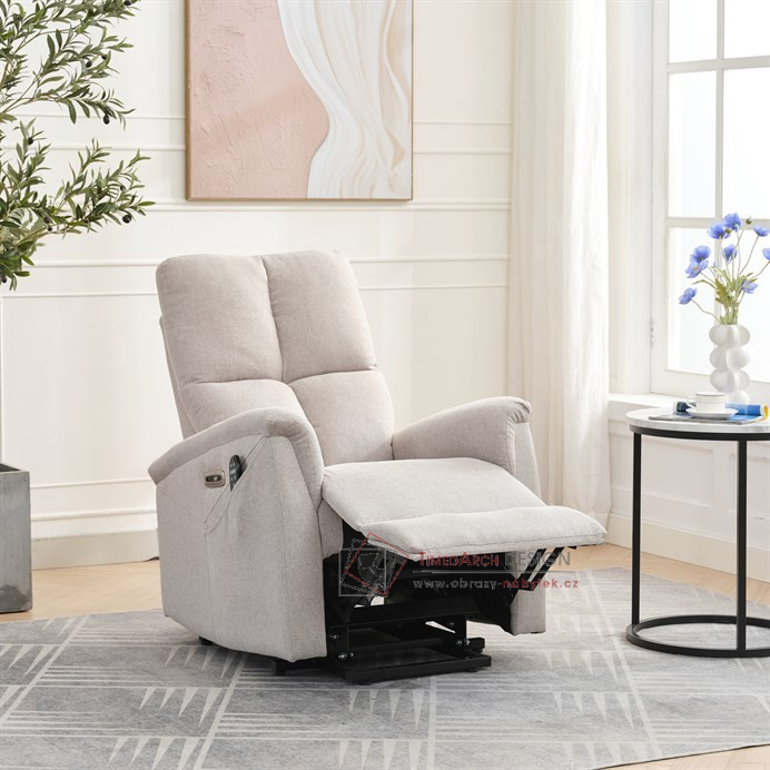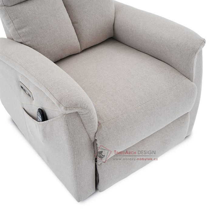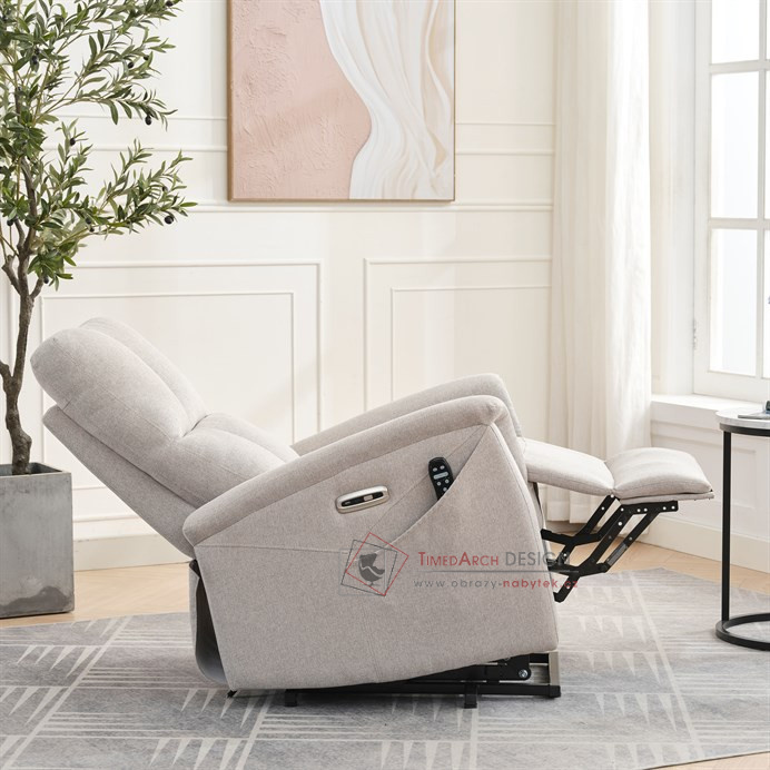 • Elektrické ovládání: Křeslo je vybaveno jedním motorem pro snadné a plynulé nastavování polohy opěradla a podnožky.
