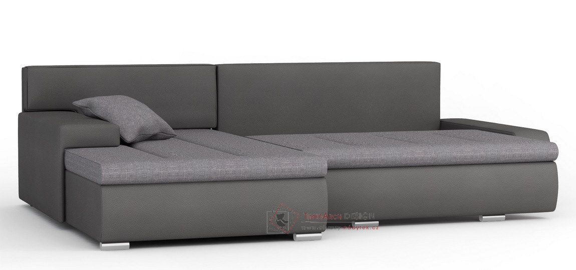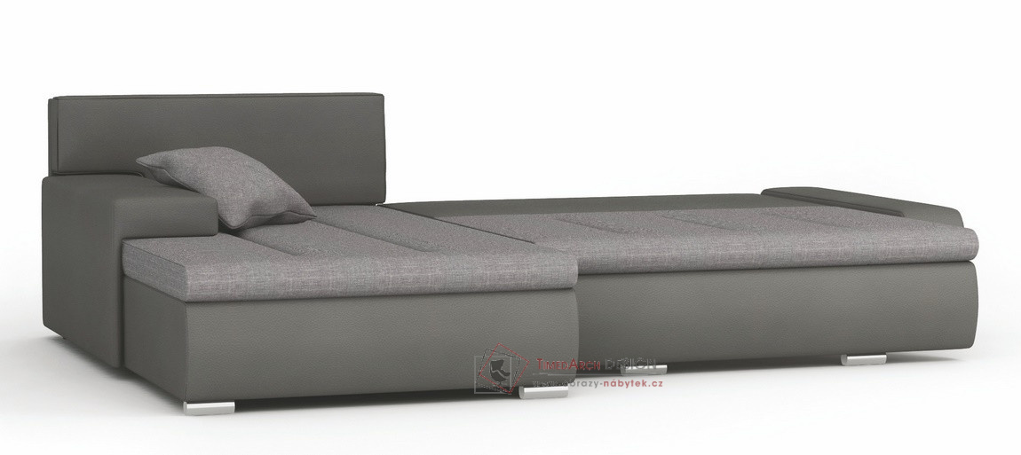 Rohová rozkládací sedačka s úložným prostorem TARO M195/S21 je očalouněna v kombinaci ekokůže Madryt 195 šedé barvy a látky Sawana 21 šedé barvy.