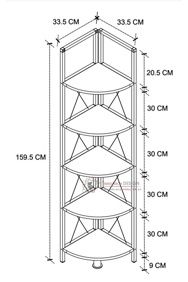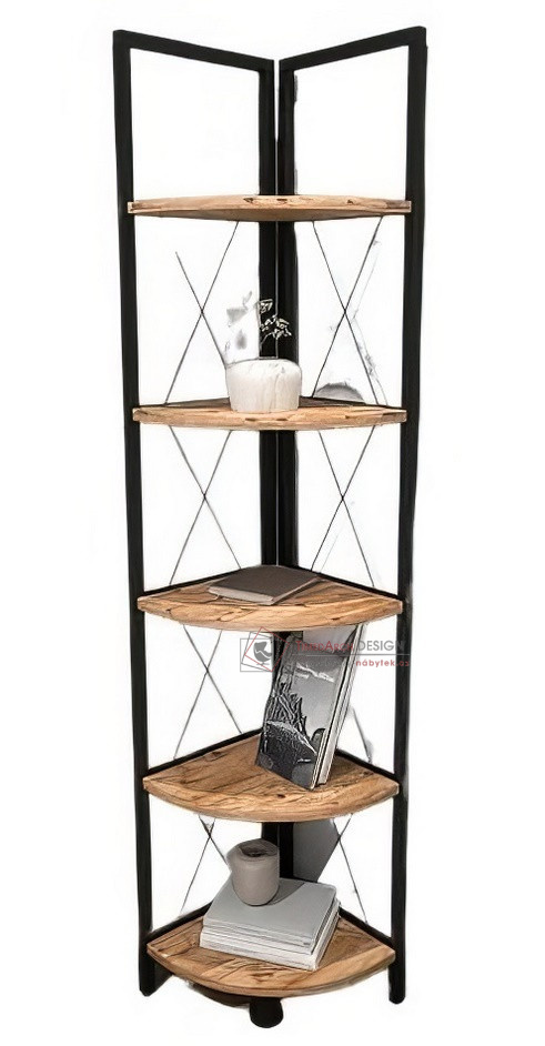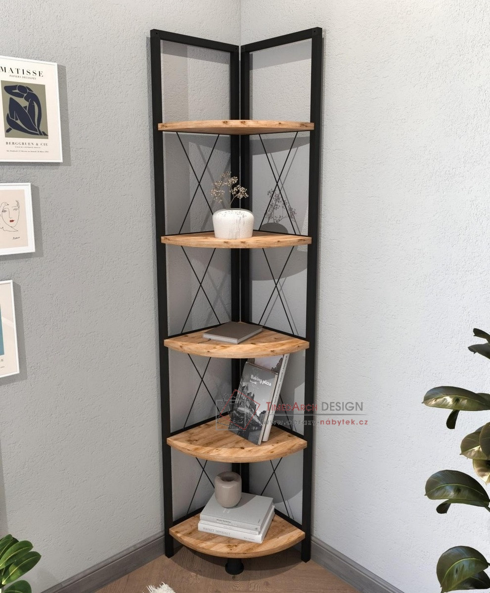 Rohový regál - knihovna WASSIE 5 má kovovou konstrukci černé barvy.