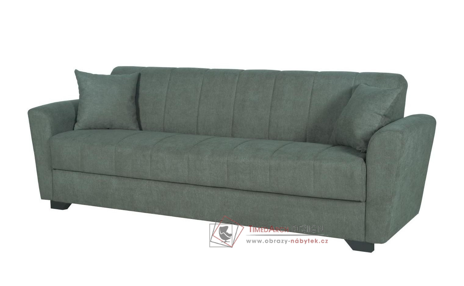 Praktická rozkládací pohovka s funkcí úložného prostoru a možností rozložení na spací plochu 190 × 103 cm.